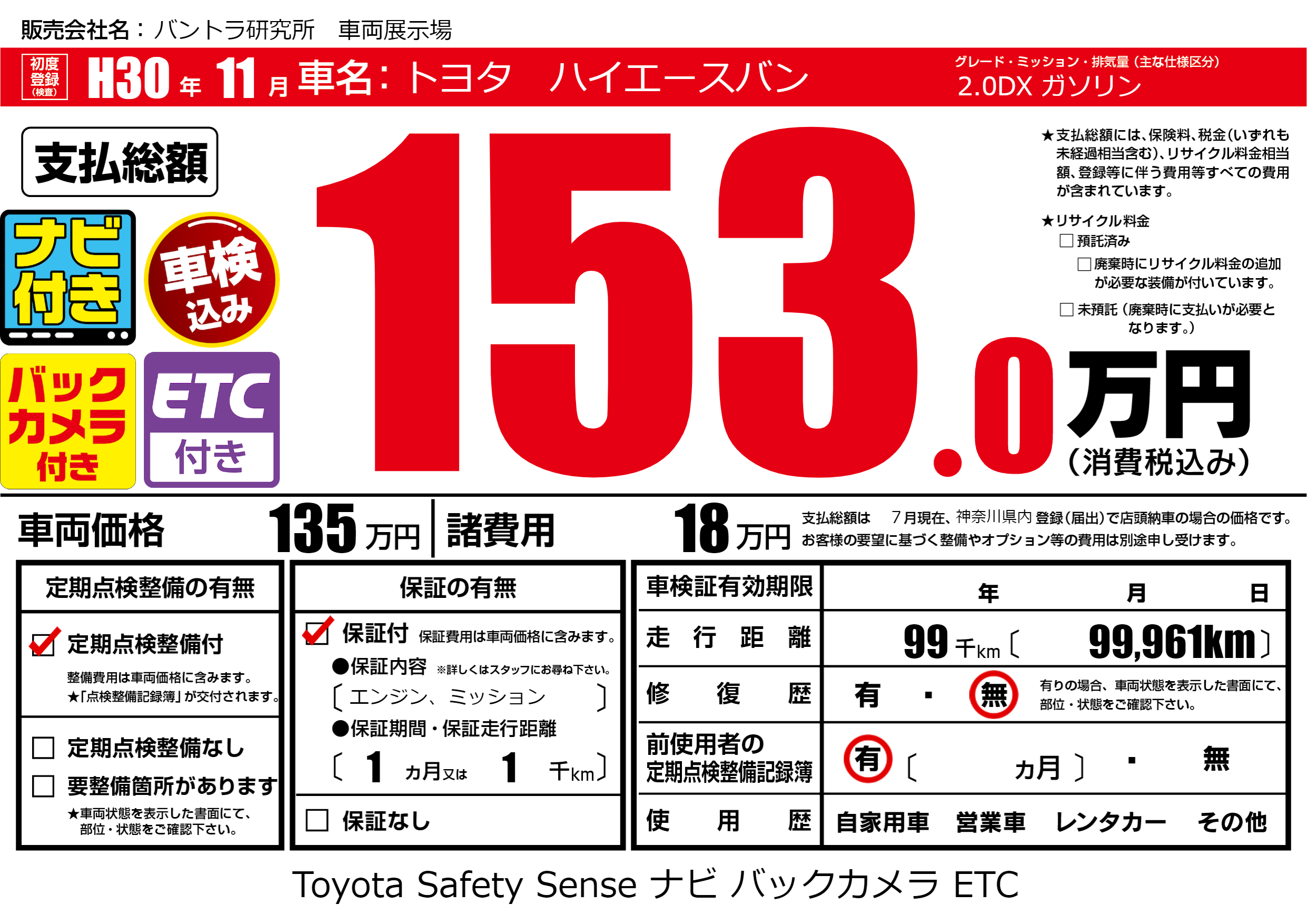 | 走行キロ | 9.9万km | 初年度登録 | H30年11月 |