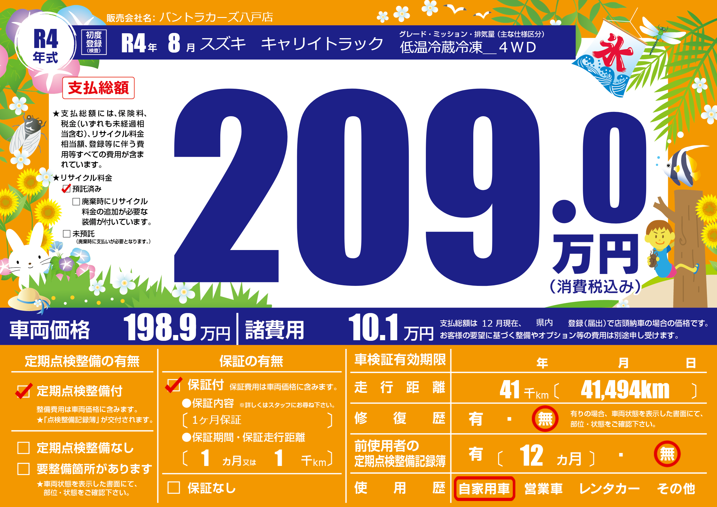 | 走行キロ | 4.1万km | 初年度登録 | R4年8月 |