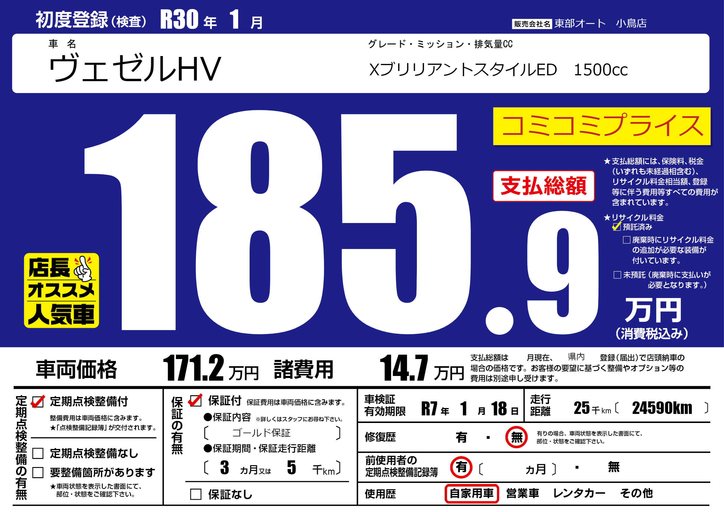 なし | 車検制限 | R7年1月18月 |