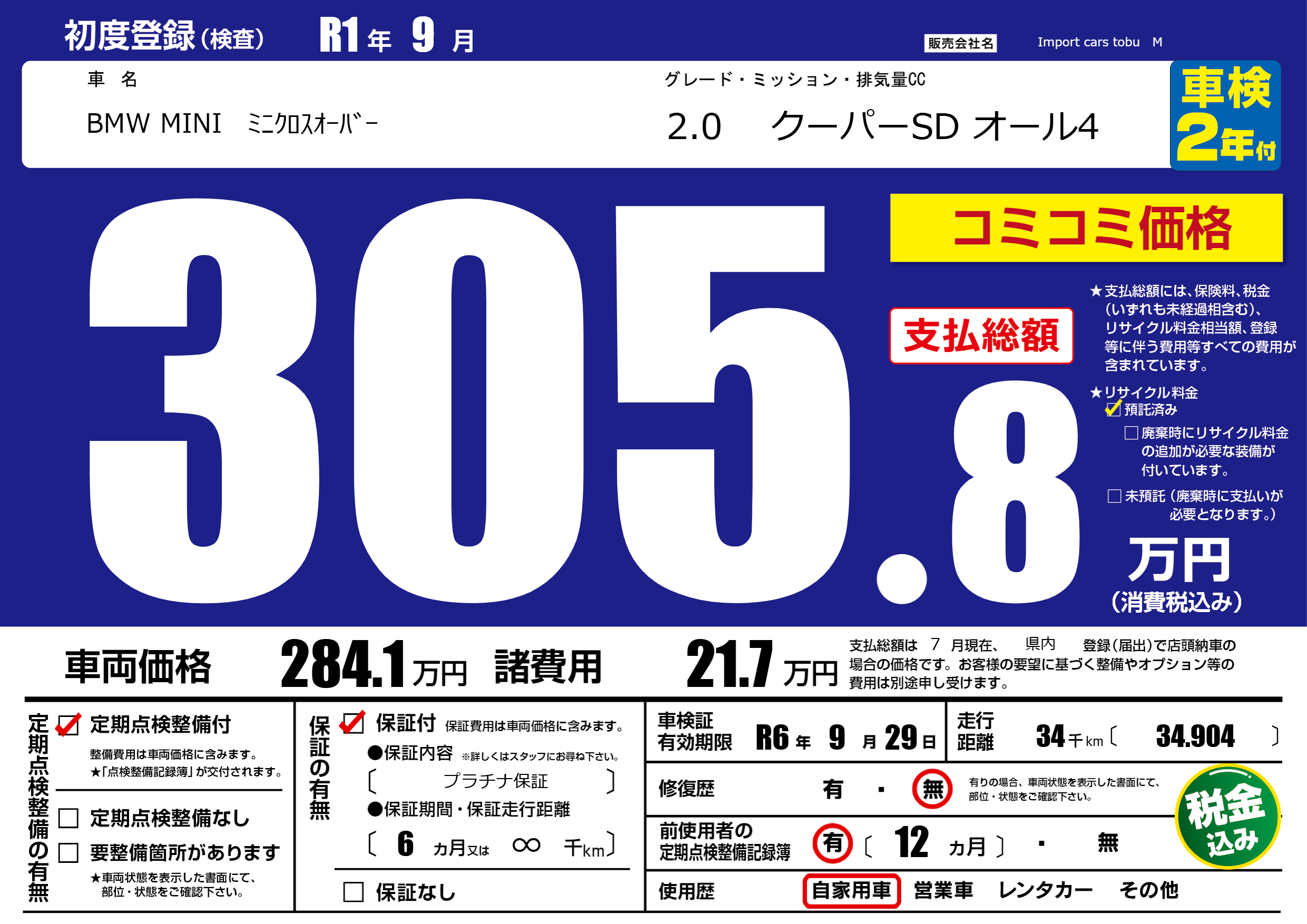 | 車検制限 | R6年 9月 29日 | ||