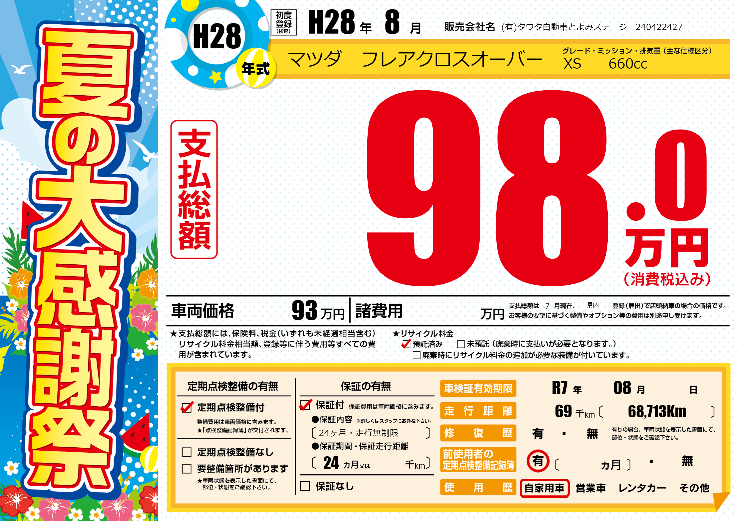 | 車検制限 | R7年 08月 - 日 | ||