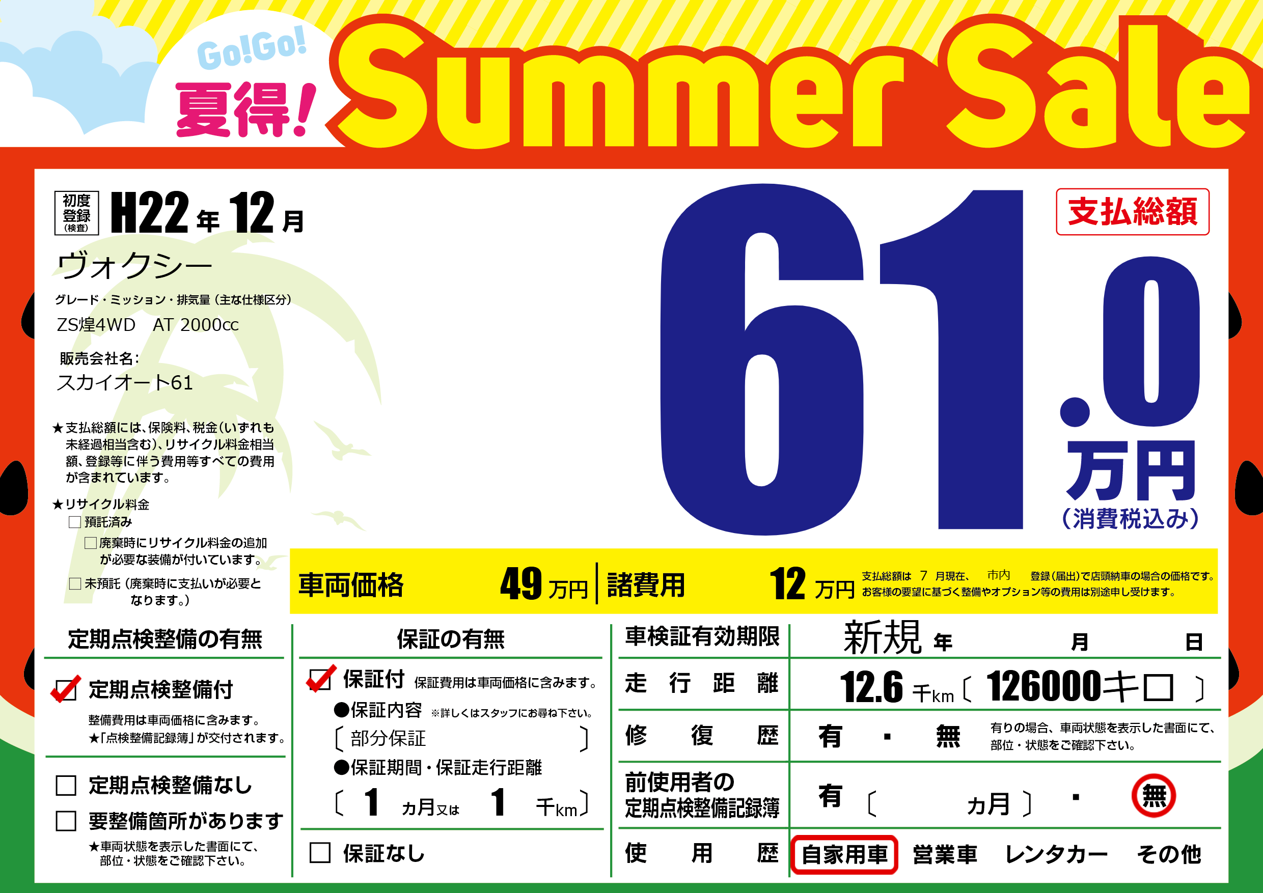 | 走行キロ | 1.2万km | 初年度登録 | H22年12月 |