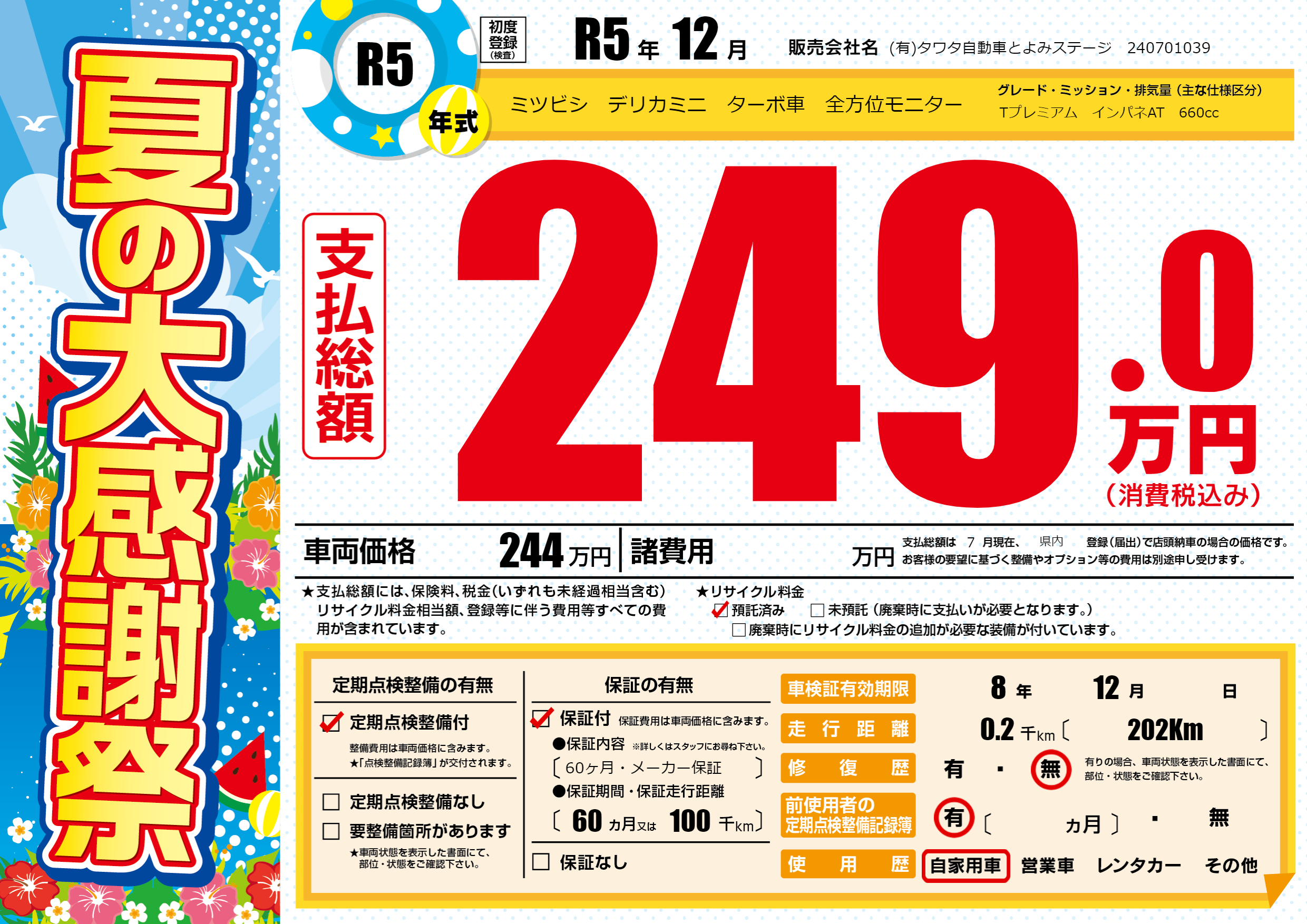 | 走行キロ | - | 初年度登録 | R5年12月 |