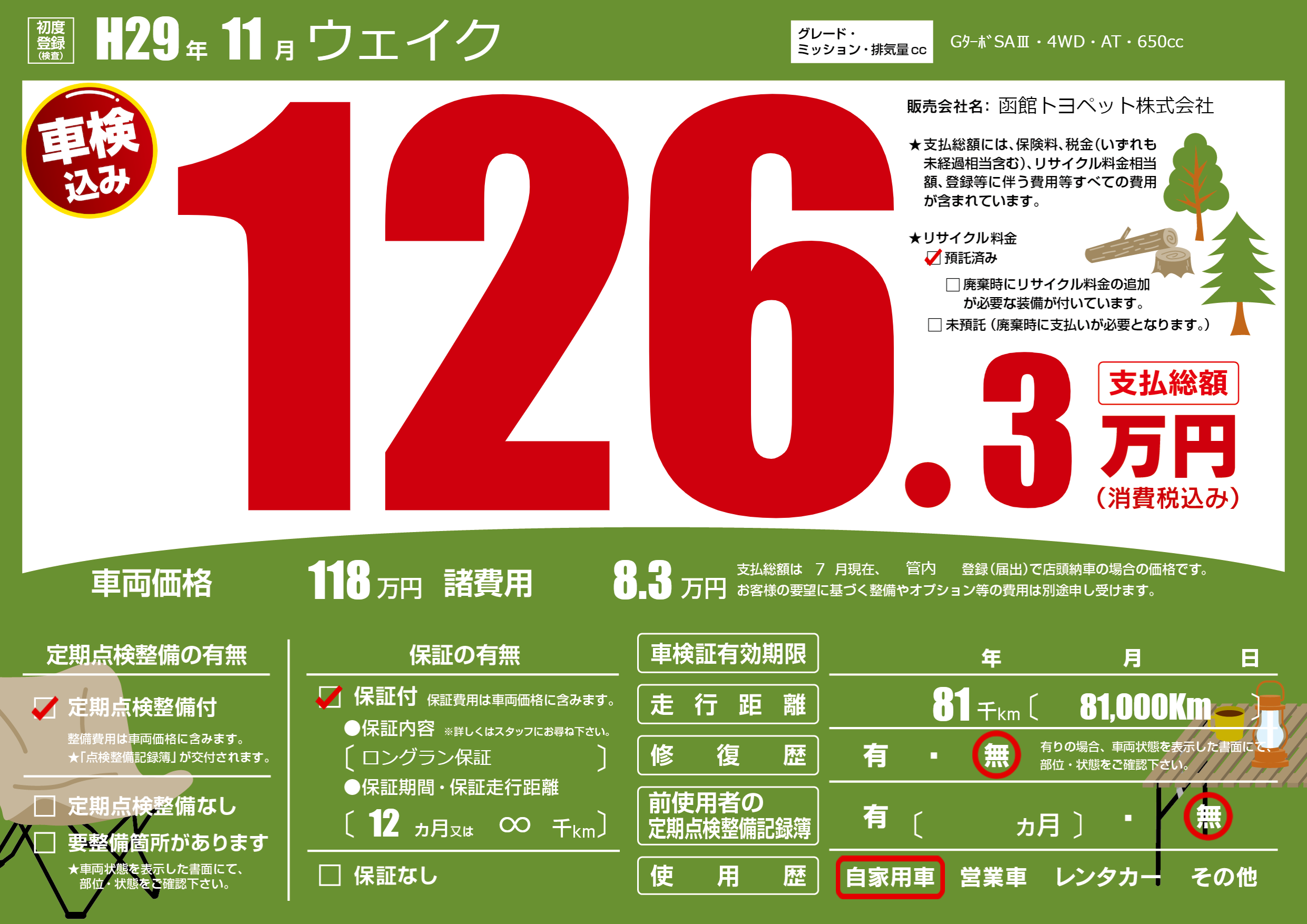 | 走行キロ | 8.1万km | ||