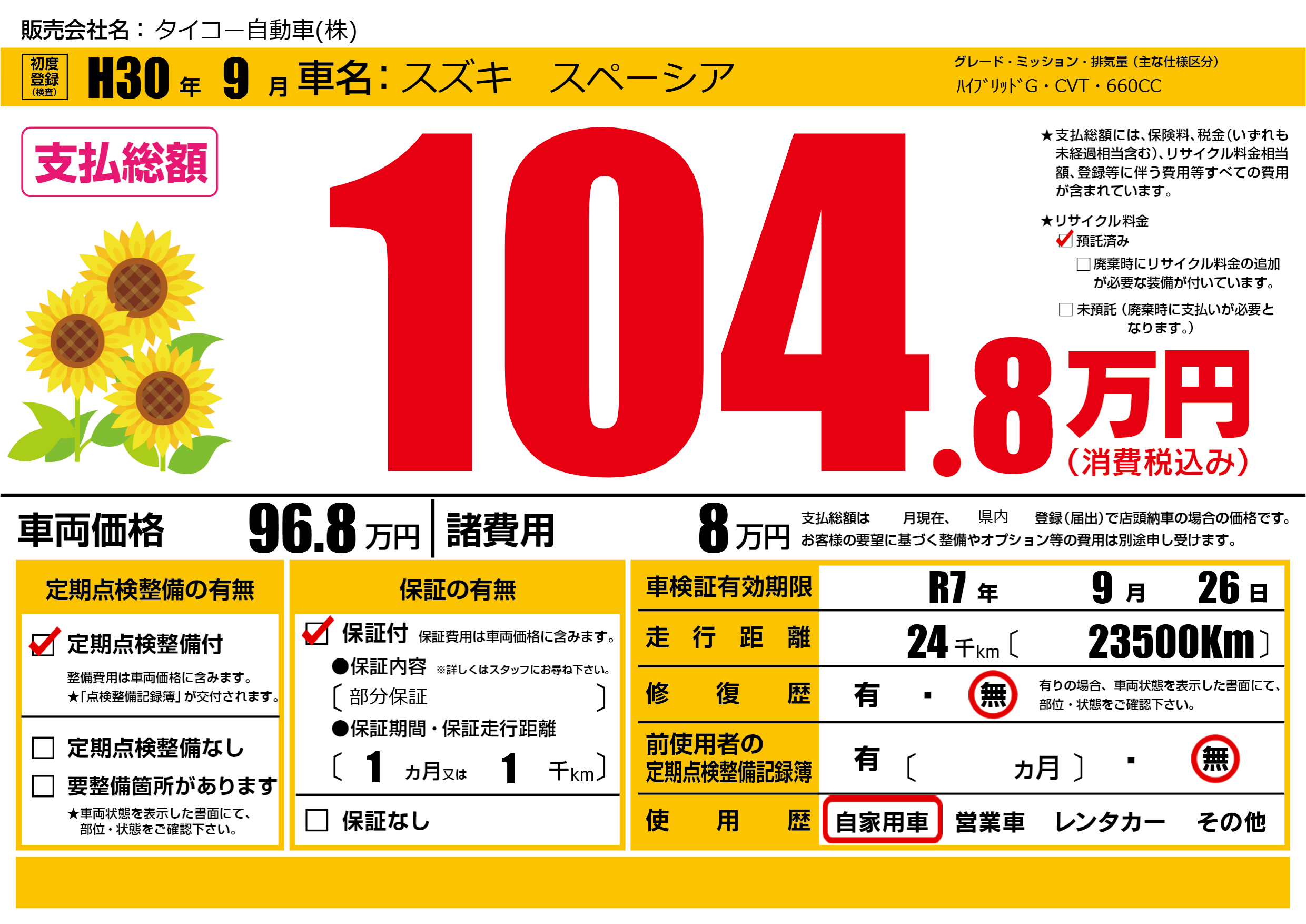 なし | 車検制限 | R7年9月26月 |