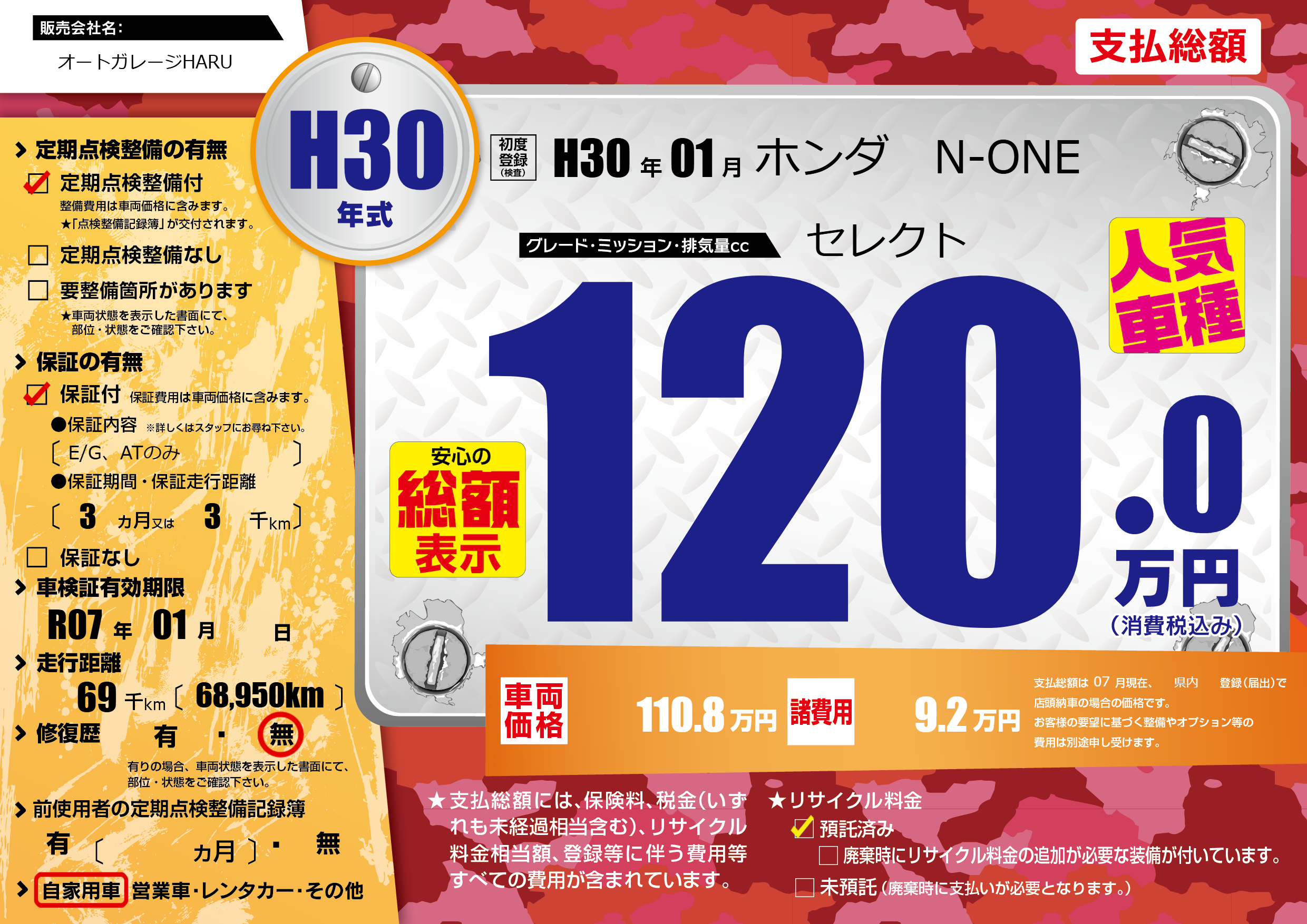 なし | 車検制限 | R07年01月---月 |