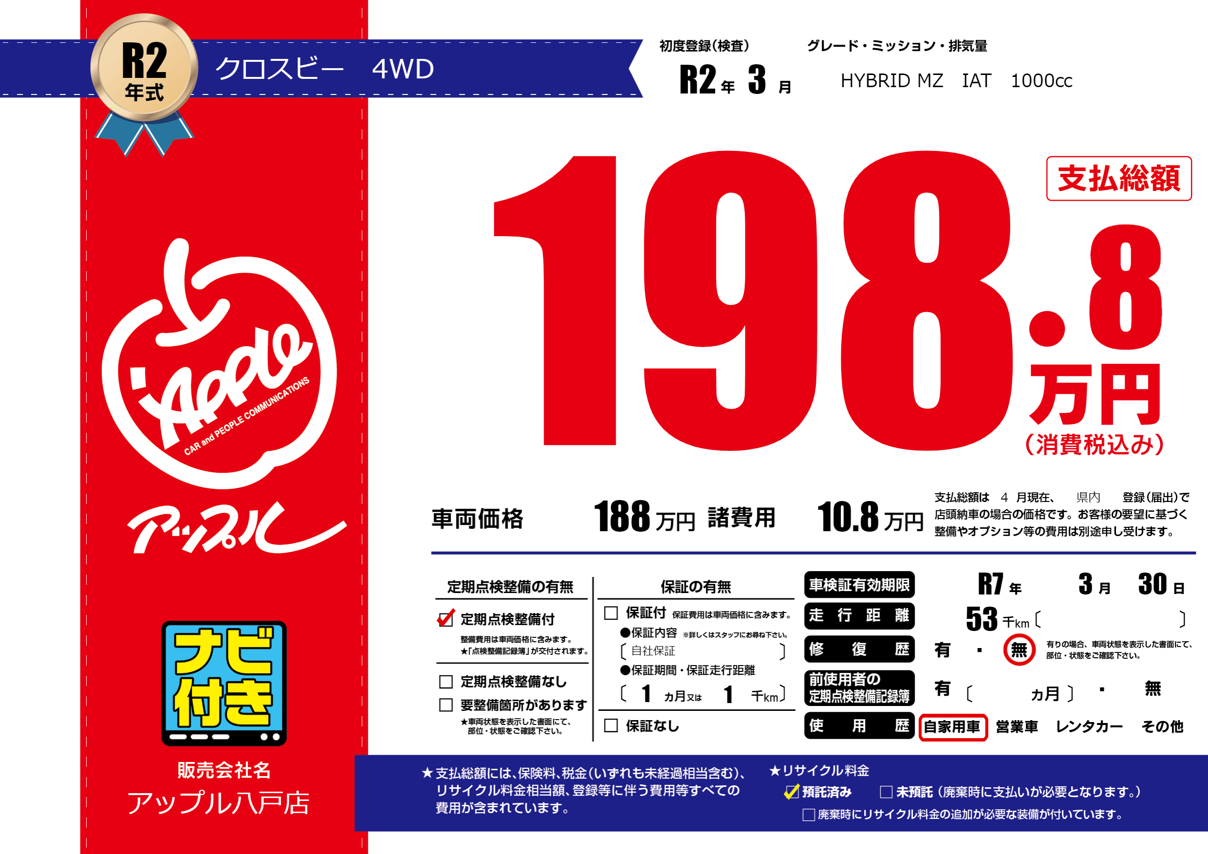 | 車検制限 | R7年 3月 30日 | ||