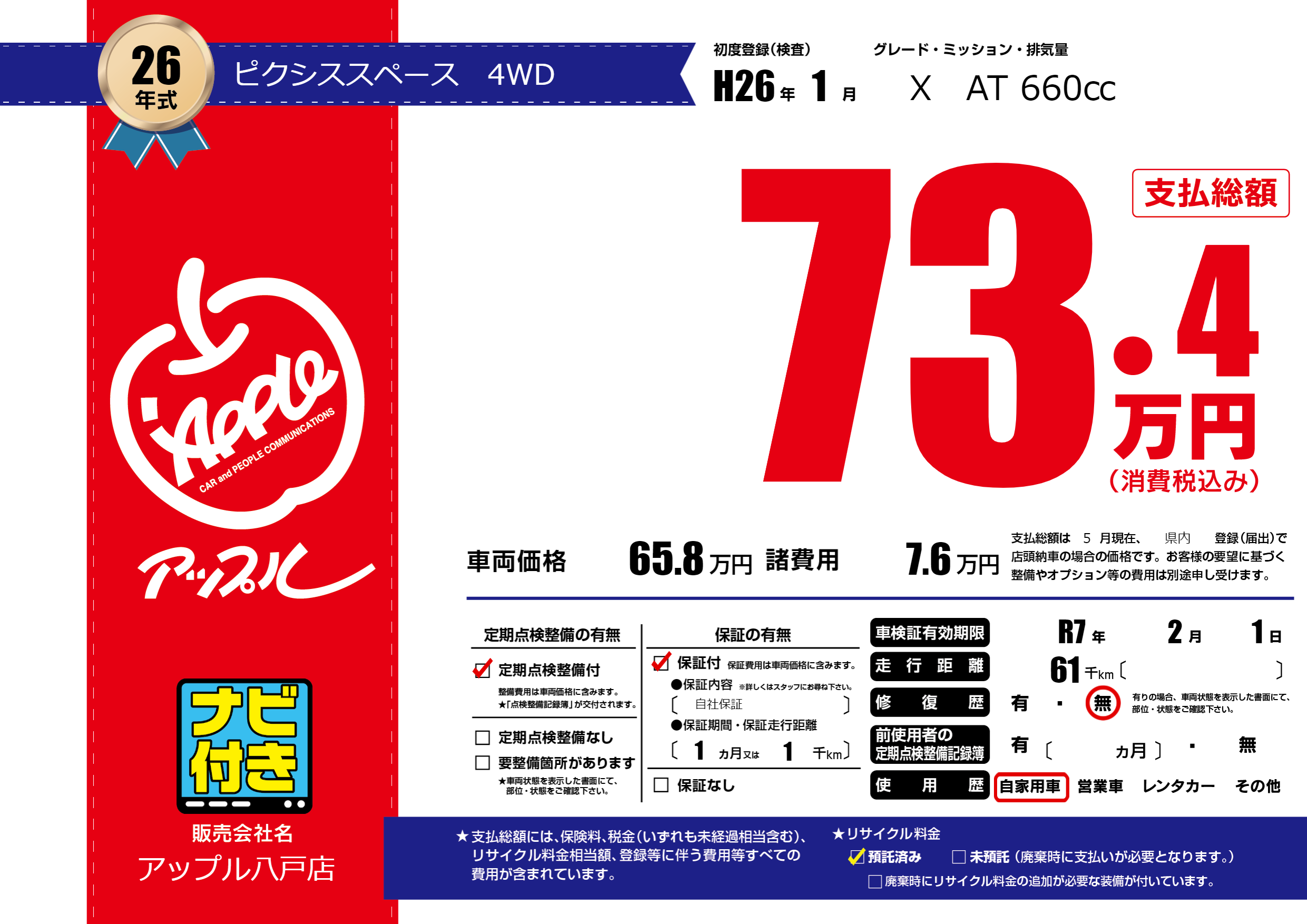 | 車検制限 | R7年 2月 1日 | ||