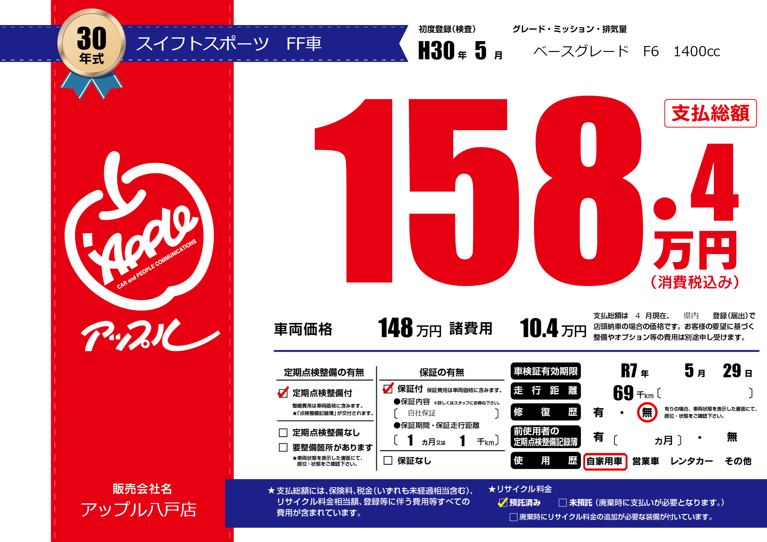 | 車検制限 | R7年 5月 29日 | ||