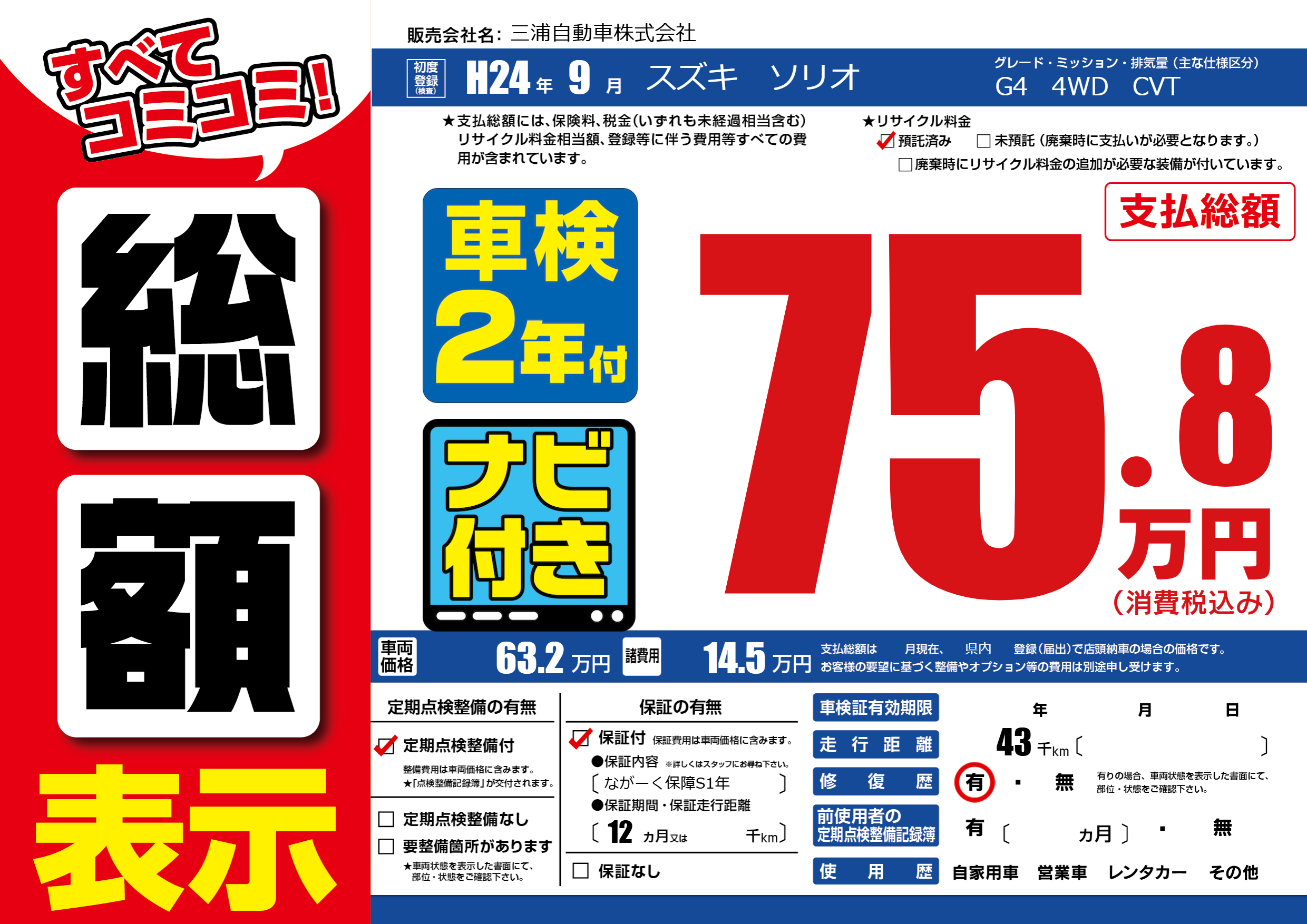 | 車名 | スズキ ソリオ | グレード ミッション 排気量 |