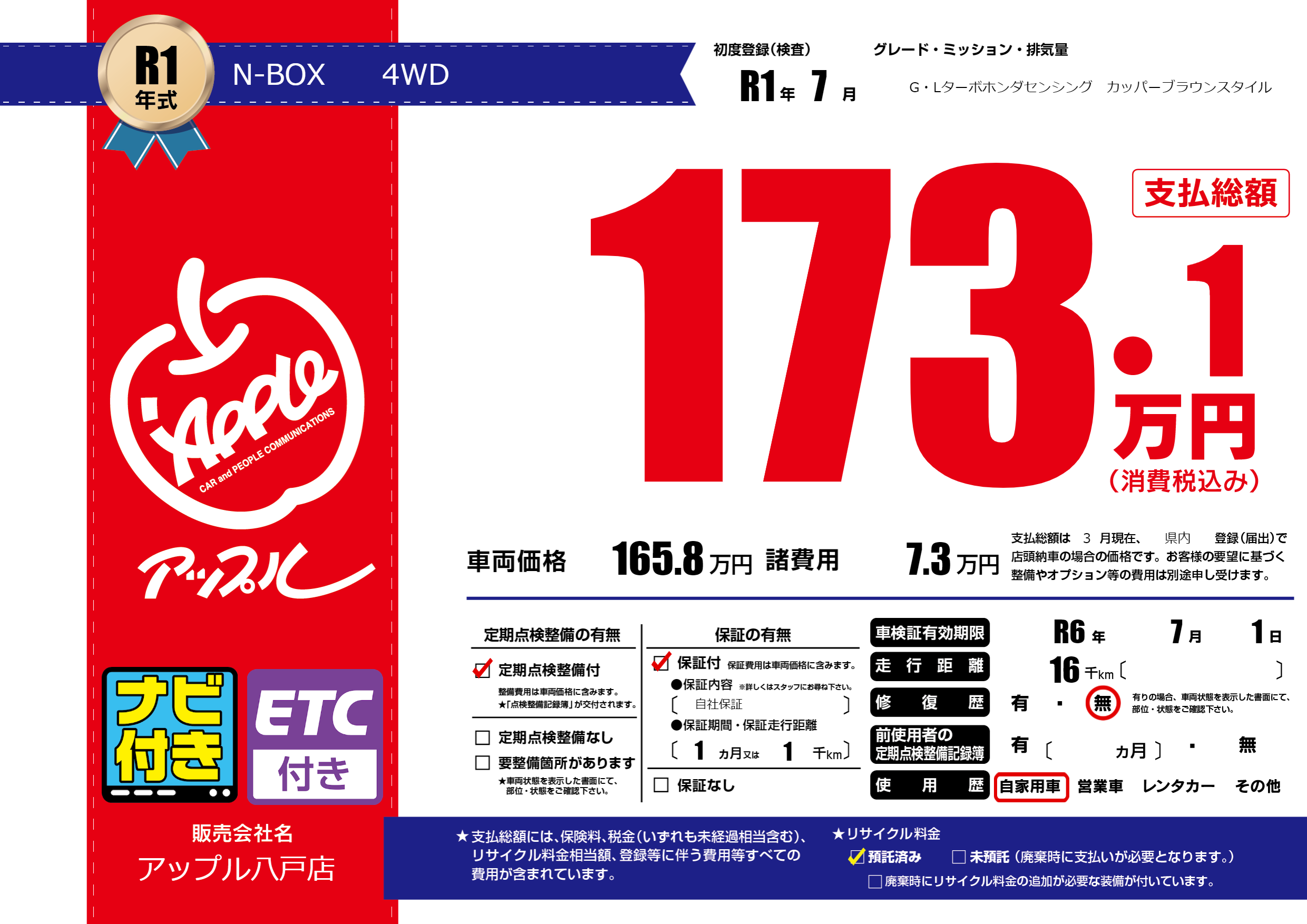 | 車名 | N-BOX 4WD | グレード ミッション 排気量 |