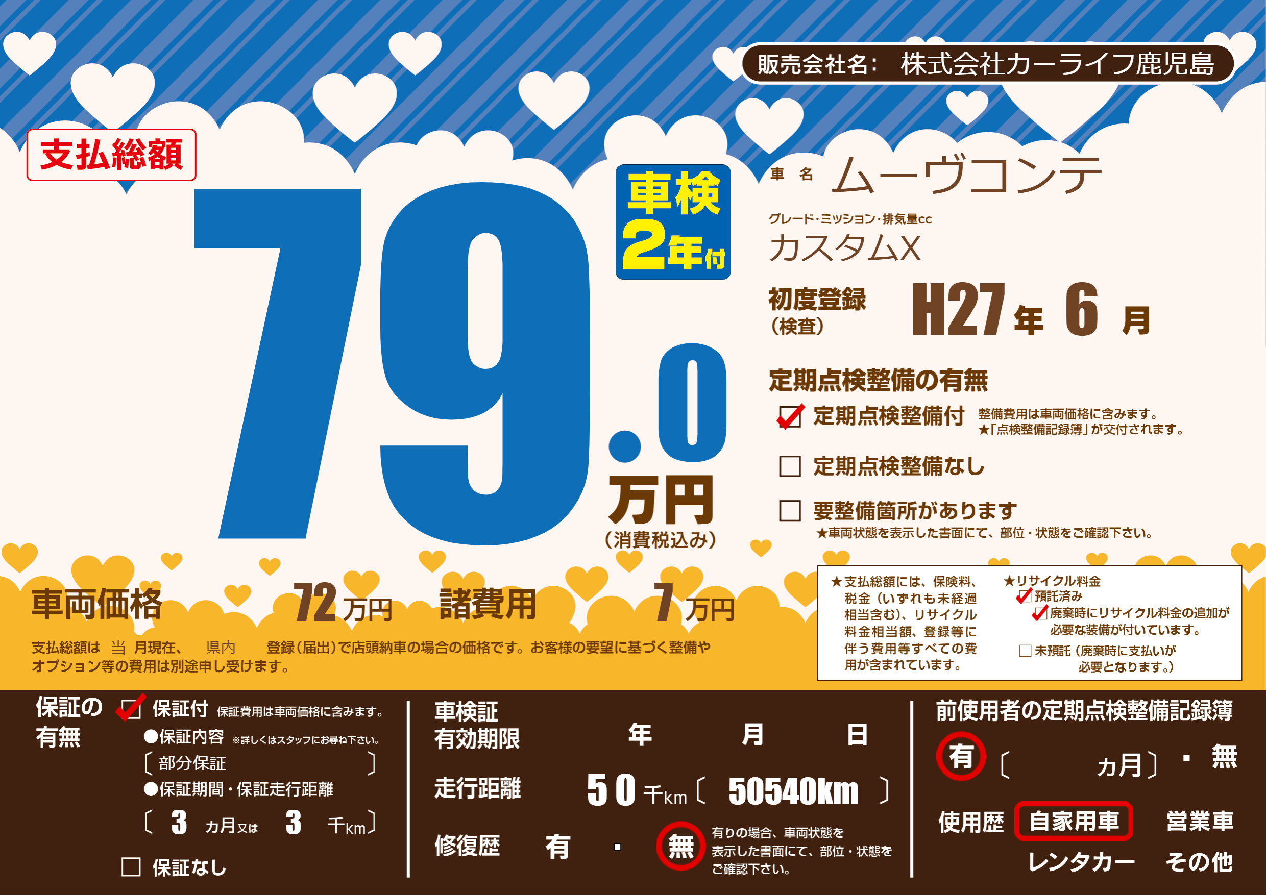 | 車名 | ムーヴコンテ | グレード ミッション 排気量 |