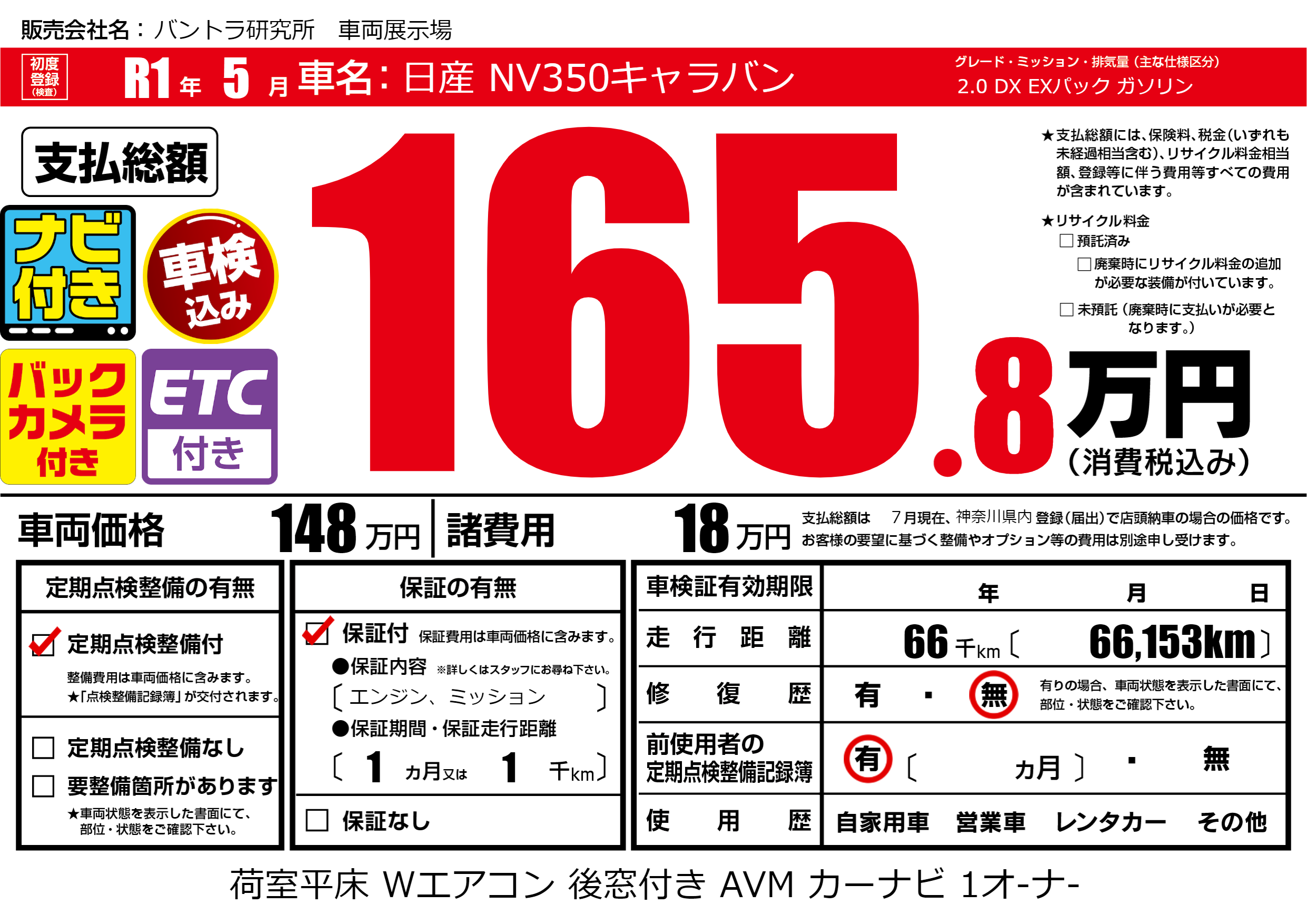 | 車名 | 日産 NV350キャラバン | グレード ミッション 排気量 |