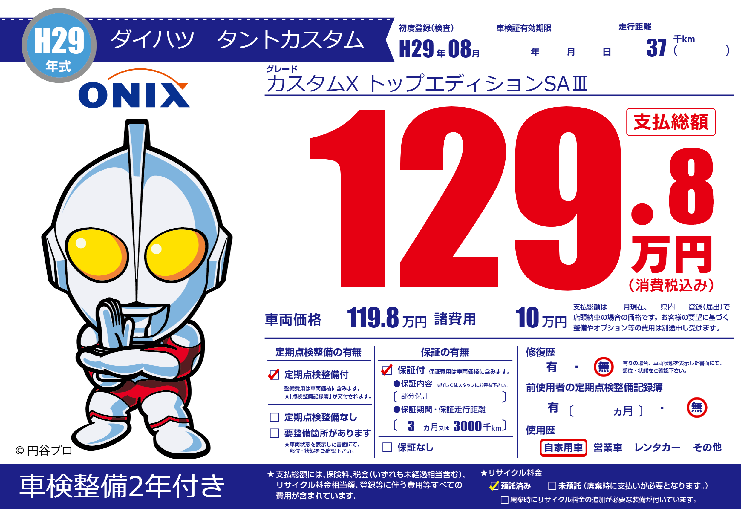 | 走行キロ | 3.7万km | 初年度登録 | H29年08月 |