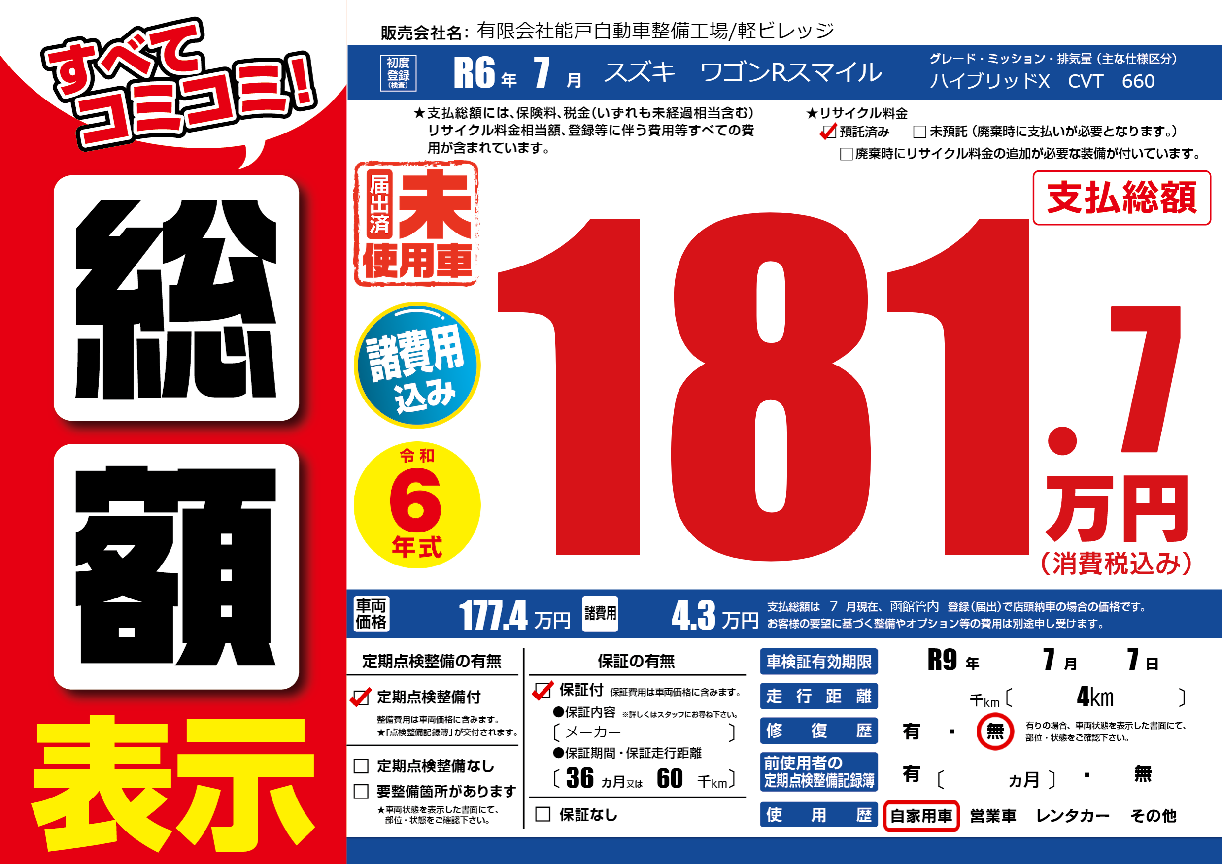 | 車名 | スズキ ワゴンRスマイル | グレード ミッション 排気量 |