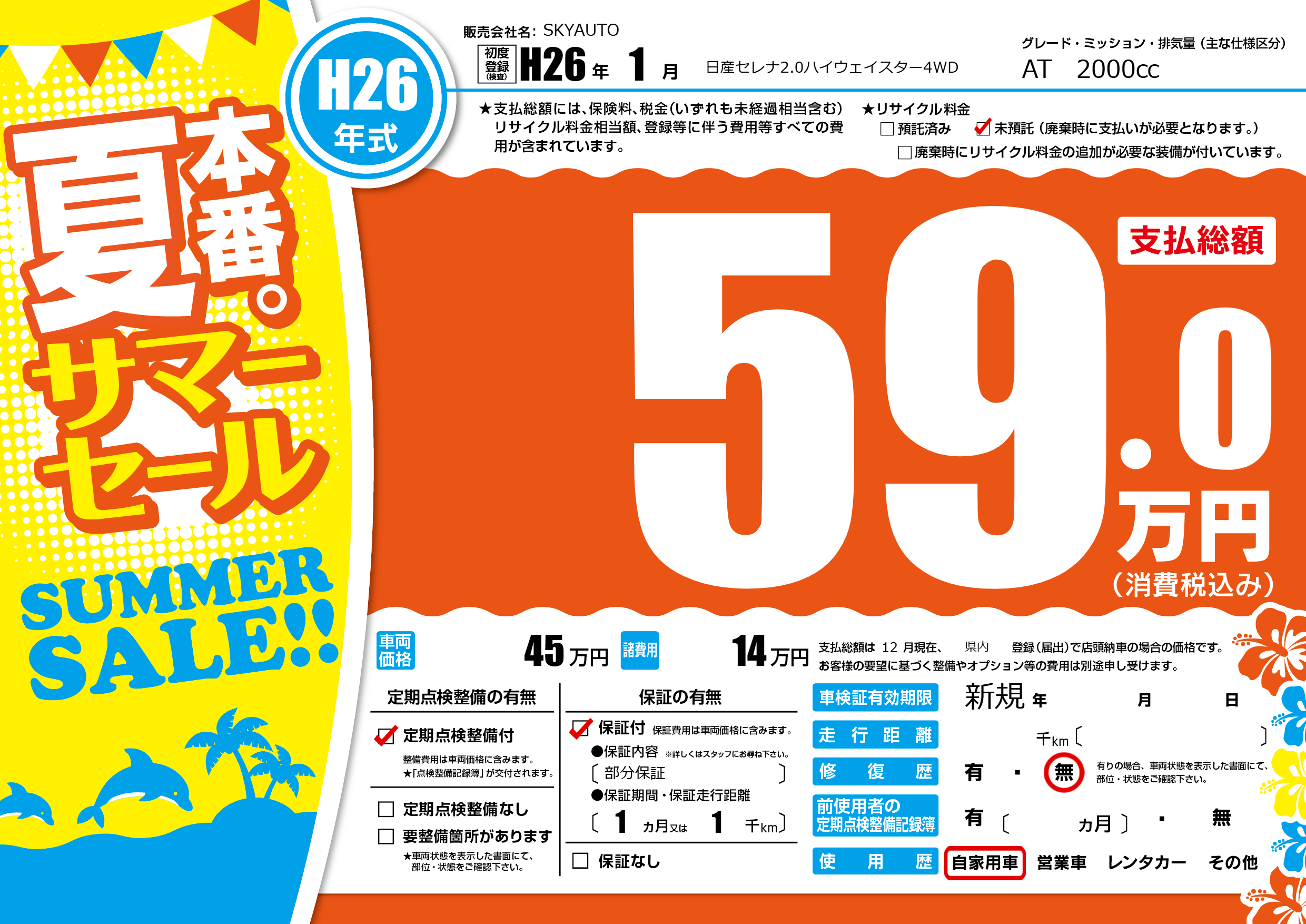 | 走行キロ | - | 初年度登録 | H26年1月 |