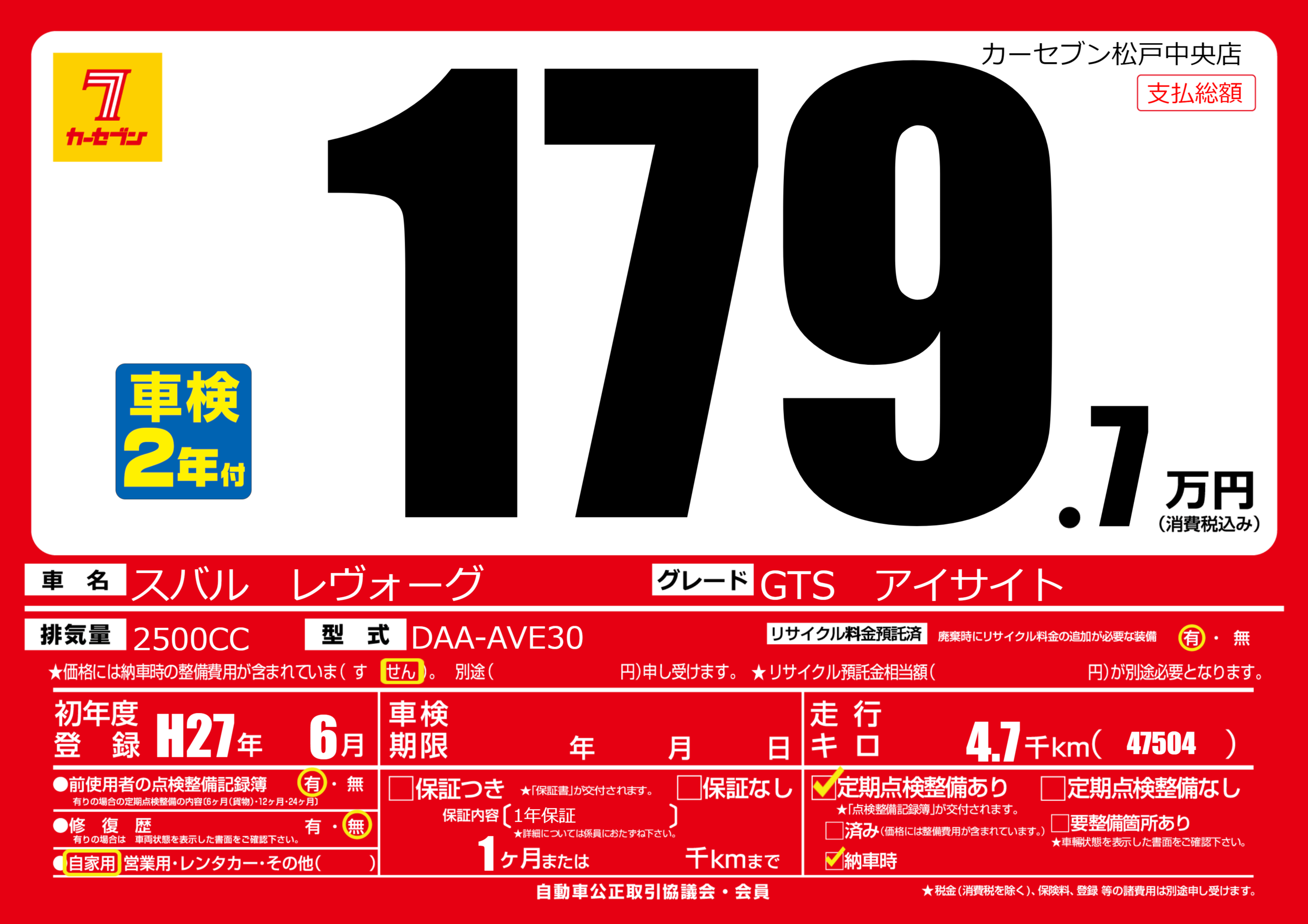 | 初年度登録 | H27年6月 | ||