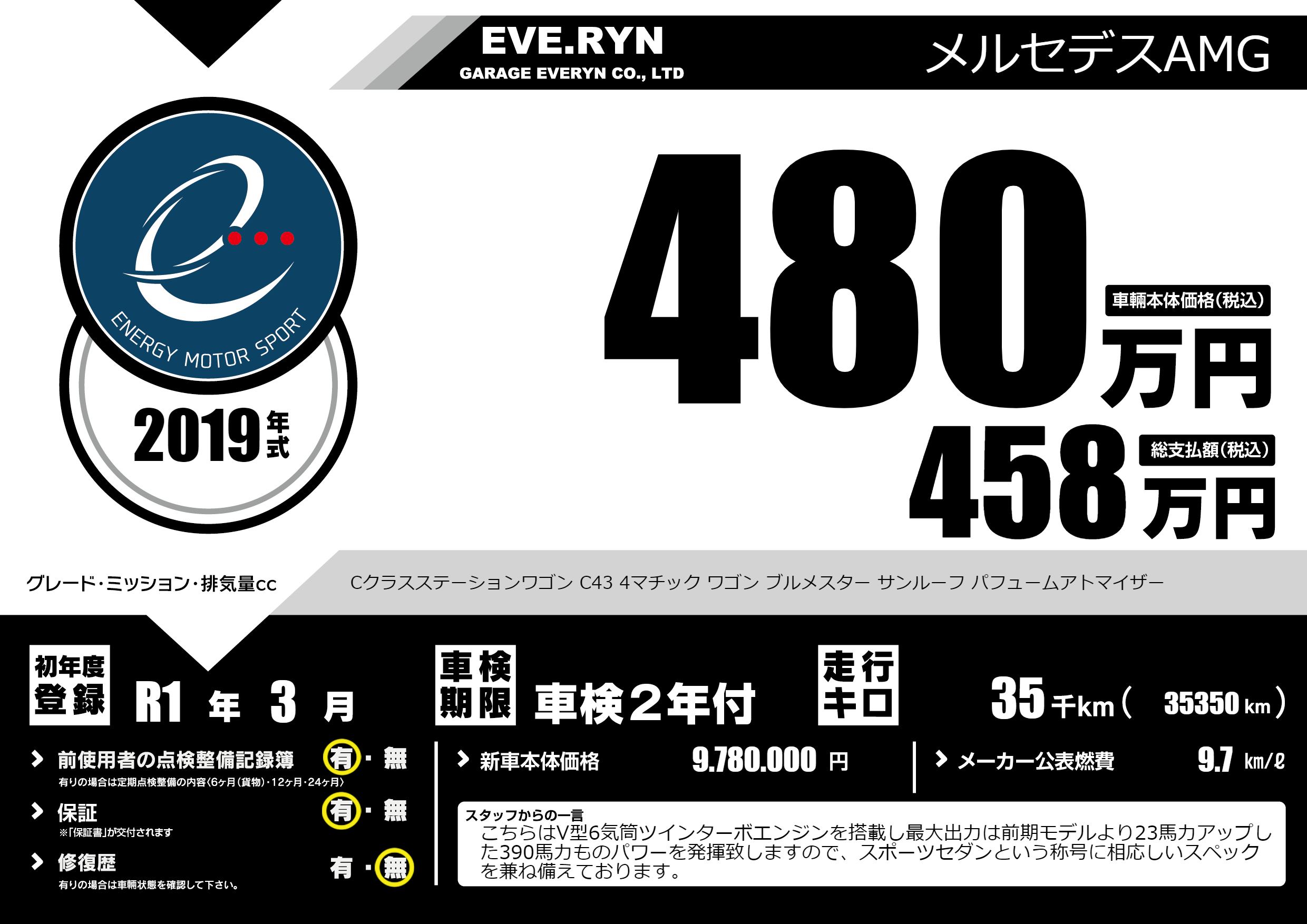 | 車名 | メルセデスAMG | グレード ミッション 排気量 |