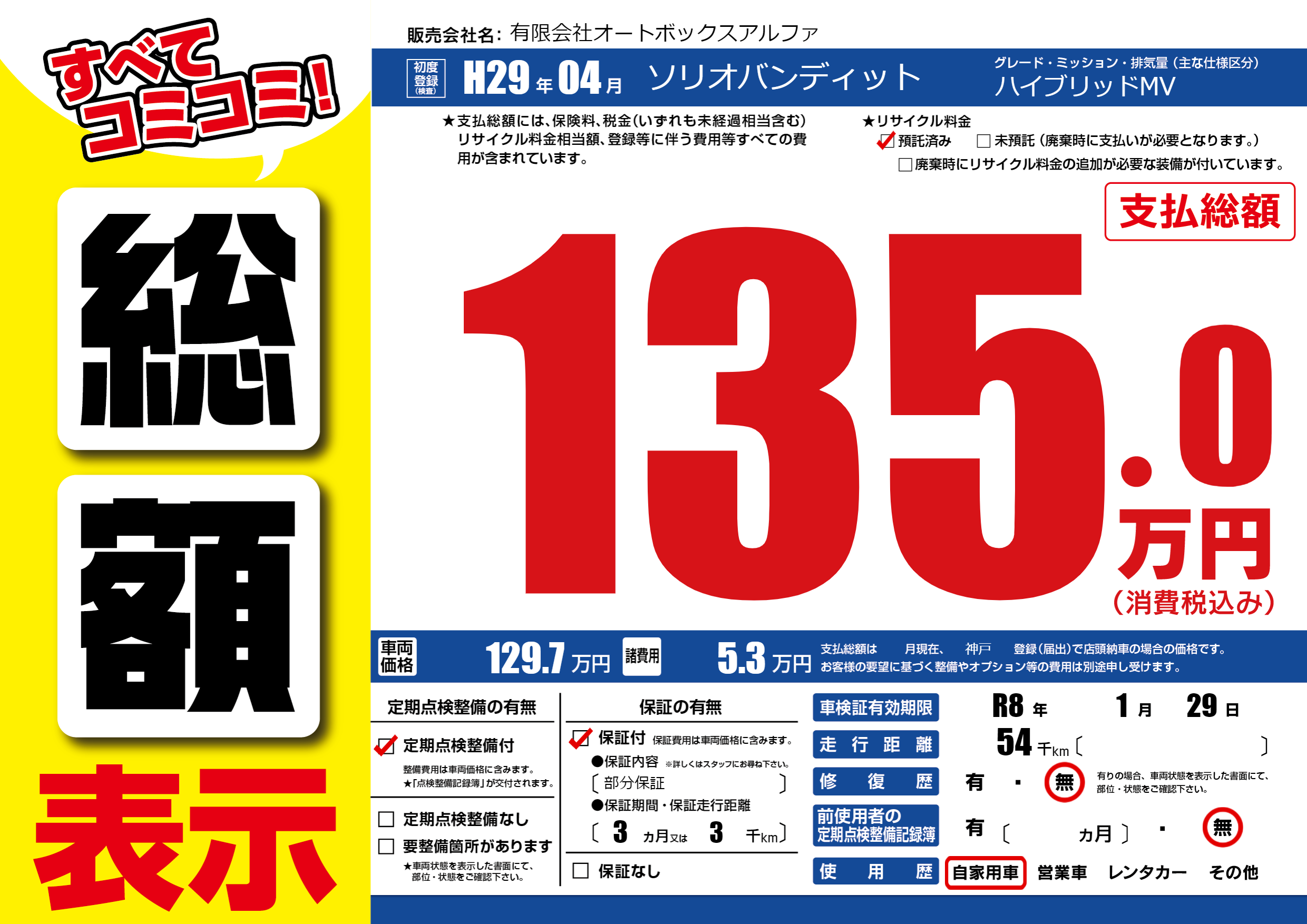 | 車名 | ソリオバンディット | グレード ミッション 排気量 |