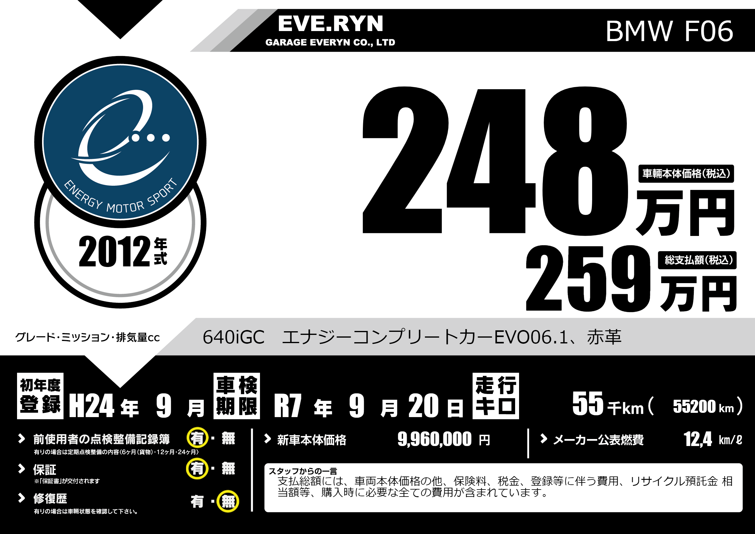 640iGC エナジーコンプリートカーEVO06.1、赤革 |