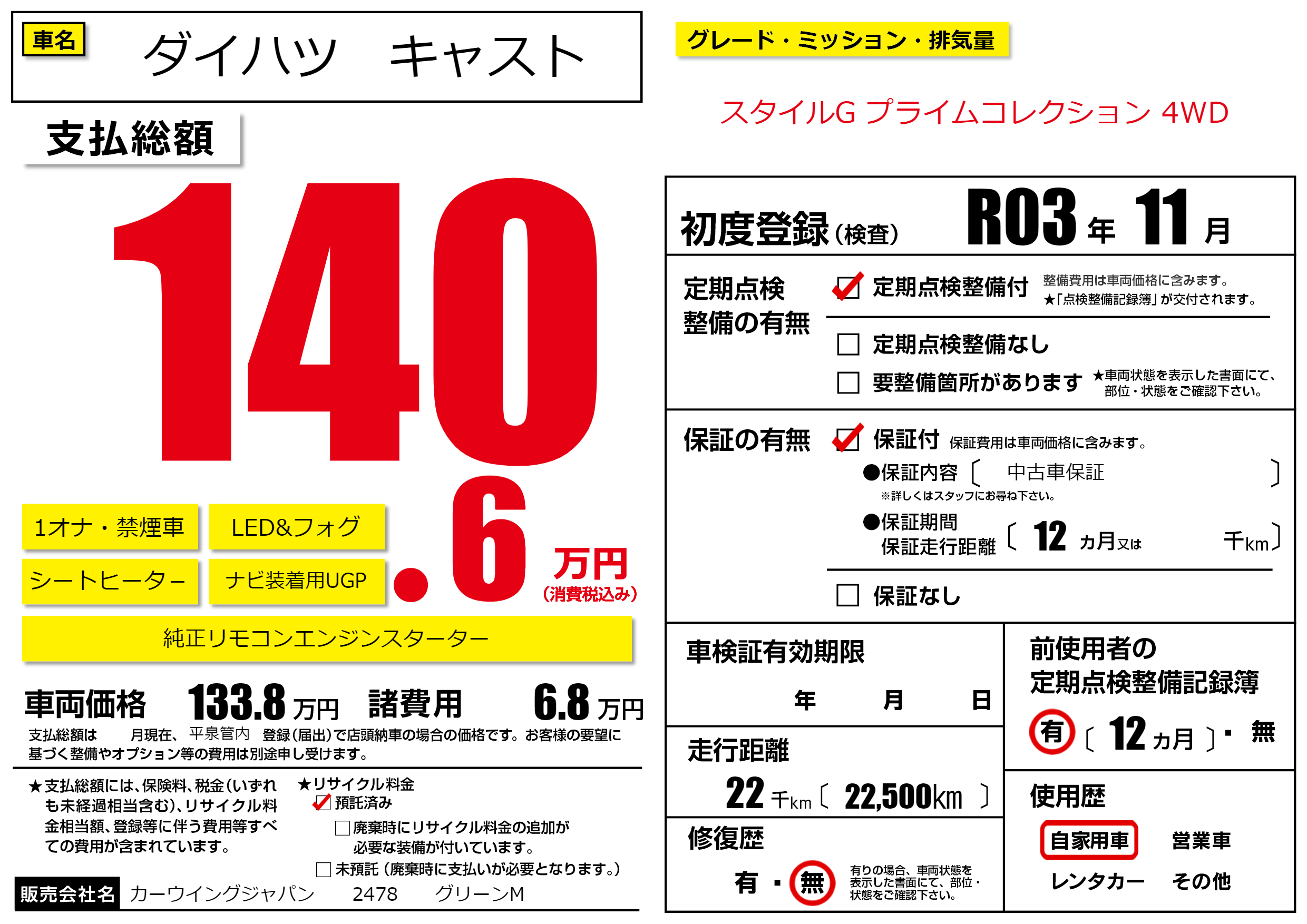 | 初年度登録 | R03年11月 | ||