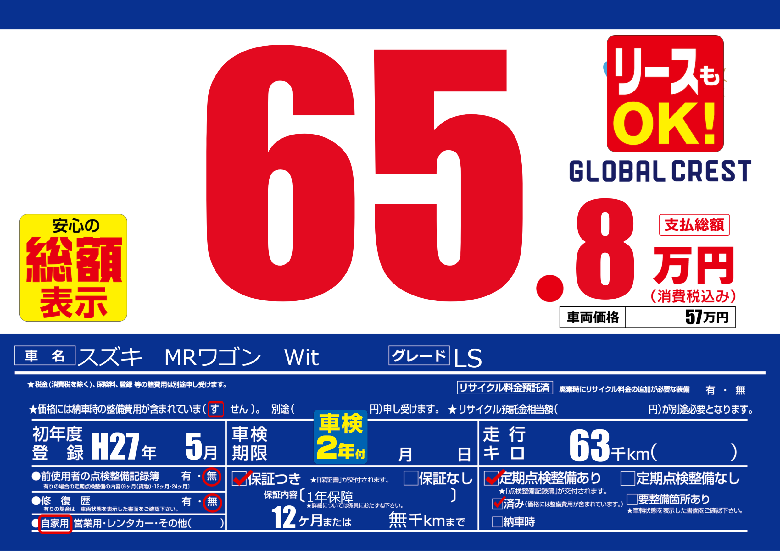 | 定期点検整備 | 定期点検整備あり 定期点検整備済み | ||