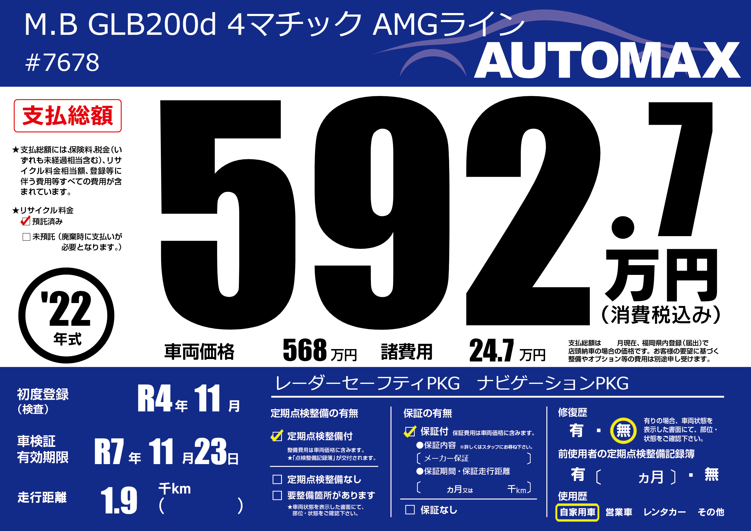 | 車検制限 | R7年 11月 23日 | ||