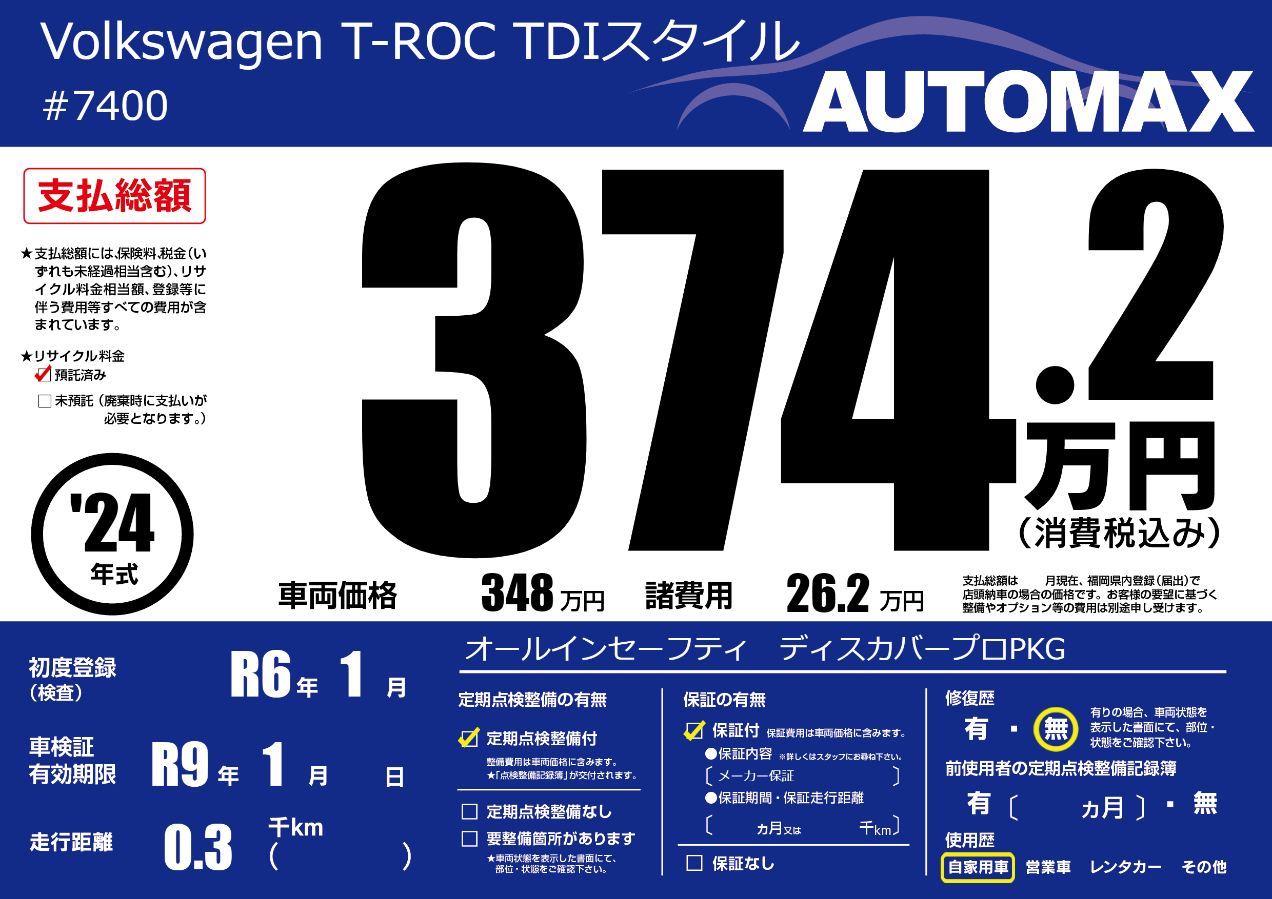 | 走行キロ | - | 初年度登録 | R6年1月 |