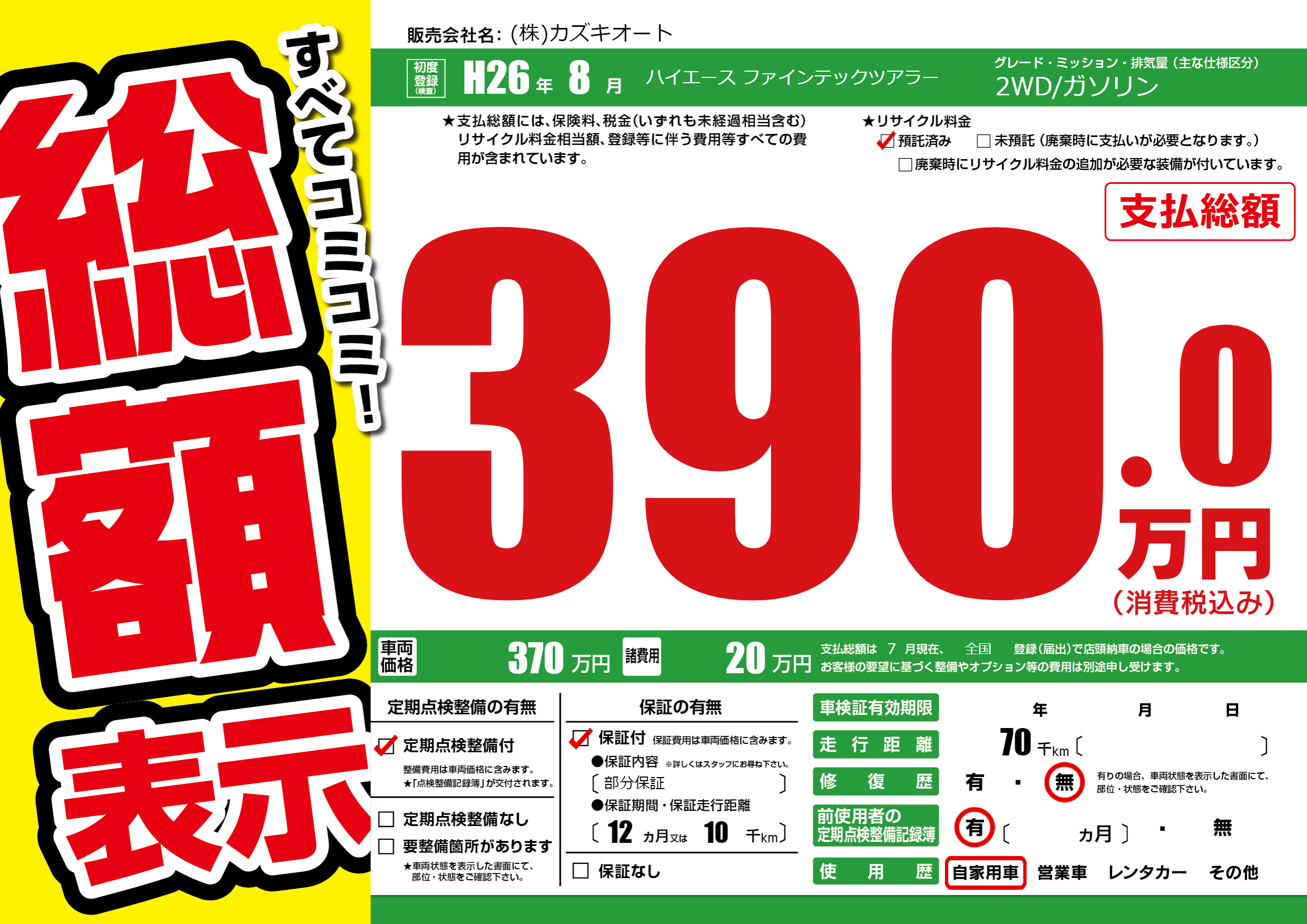 | 走行キロ | 7万km | 初年度登録 | H26年8月 |