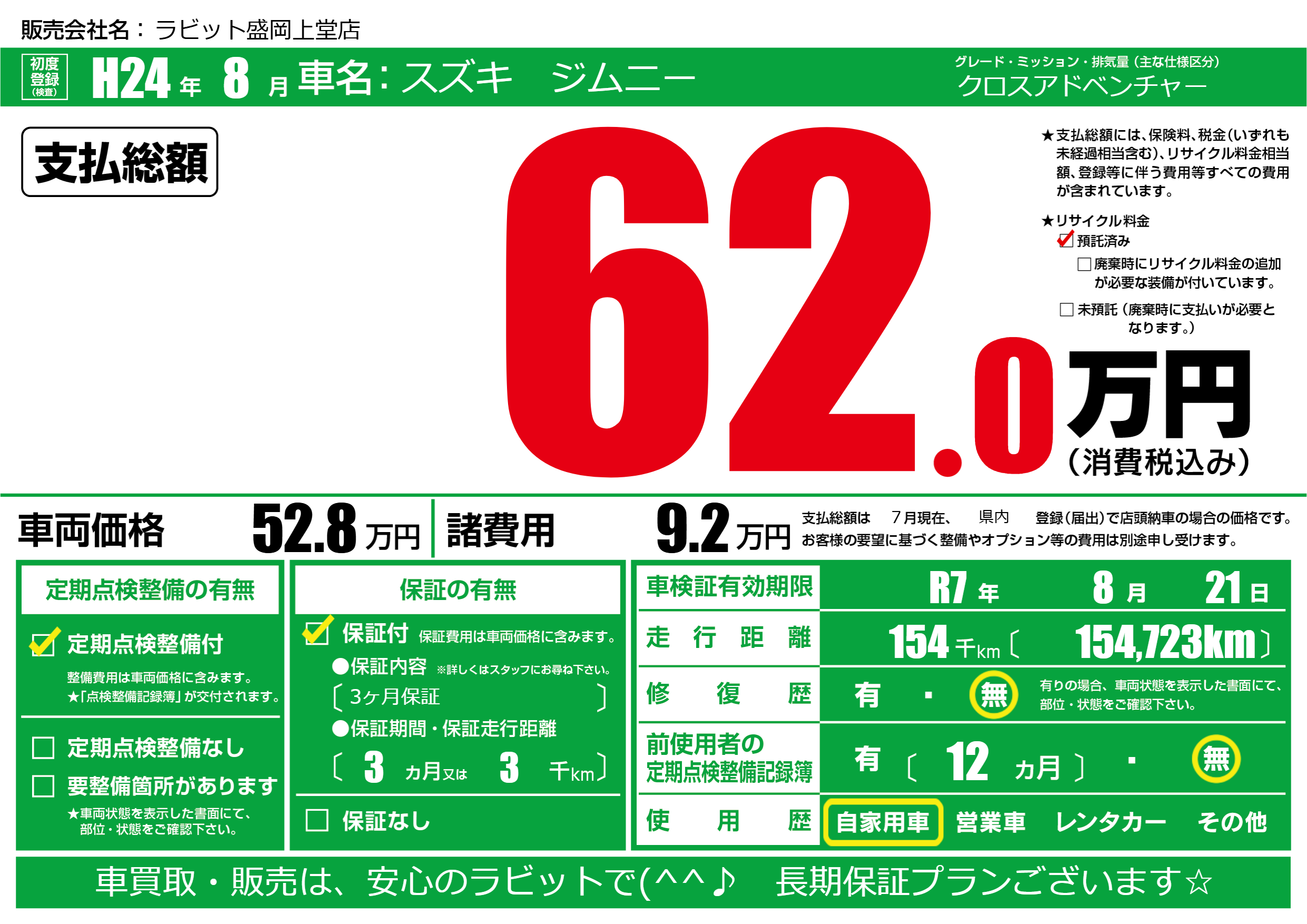 なし | 車検制限 | R7年8月21月 |