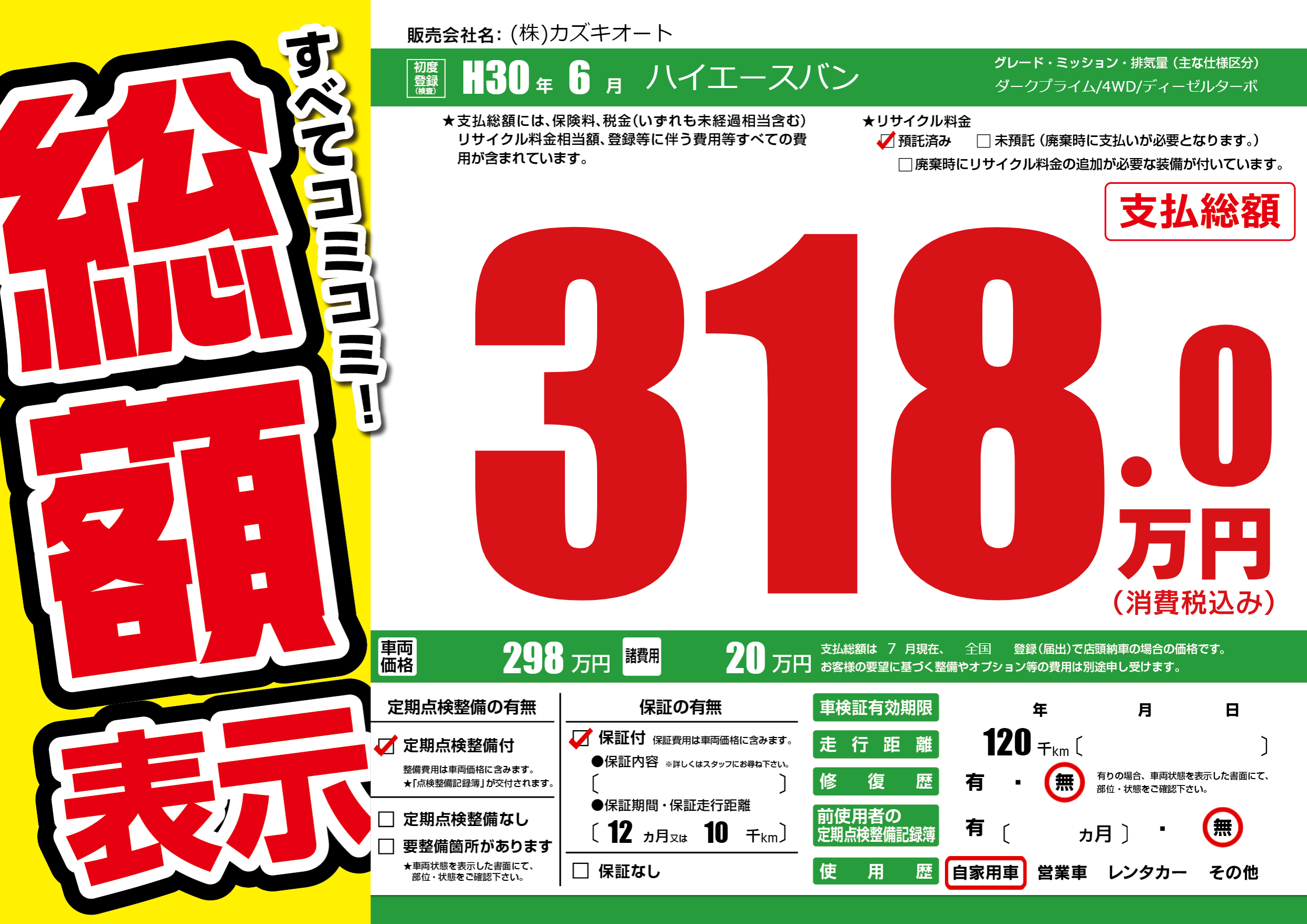 | 走行キロ | 12万km | 初年度登録 | H30年6月 |