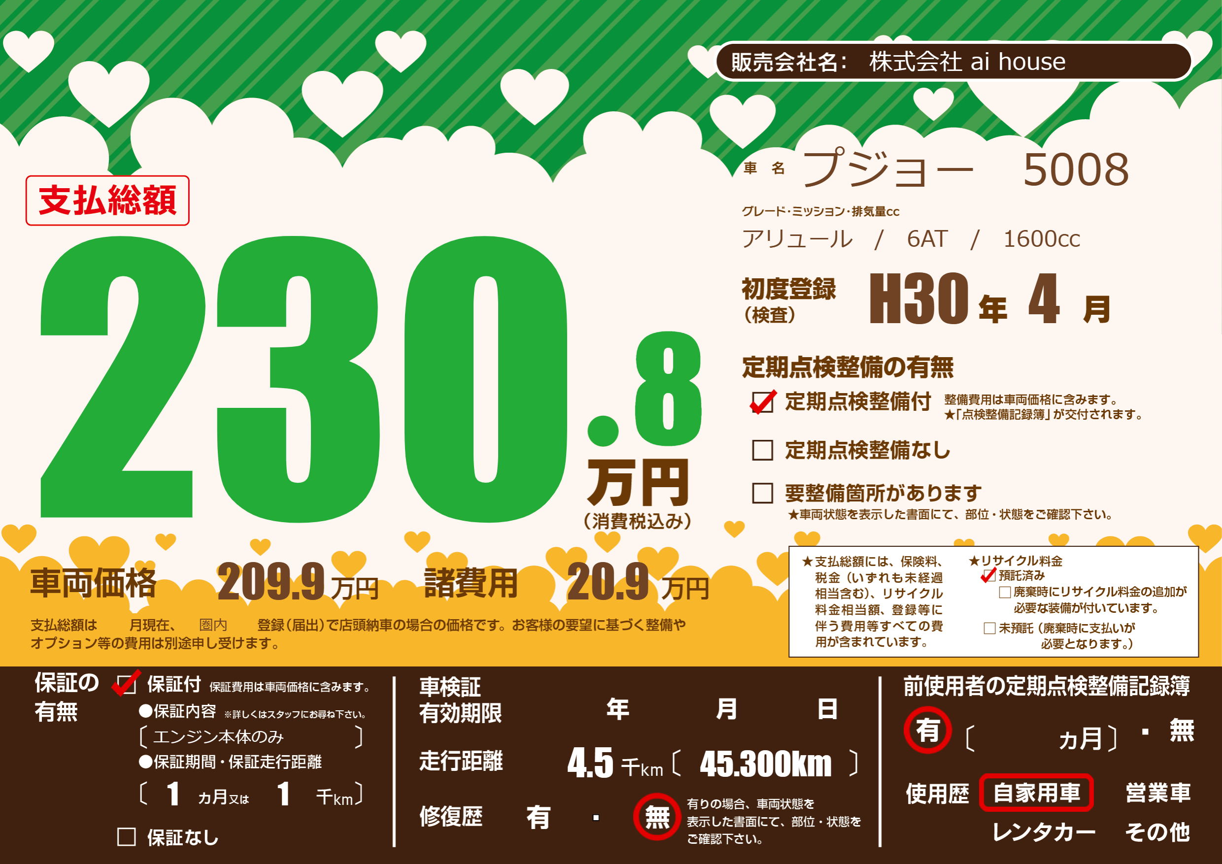 | 走行キロ | 0.4万km | 初年度登録 | H30年4月 |