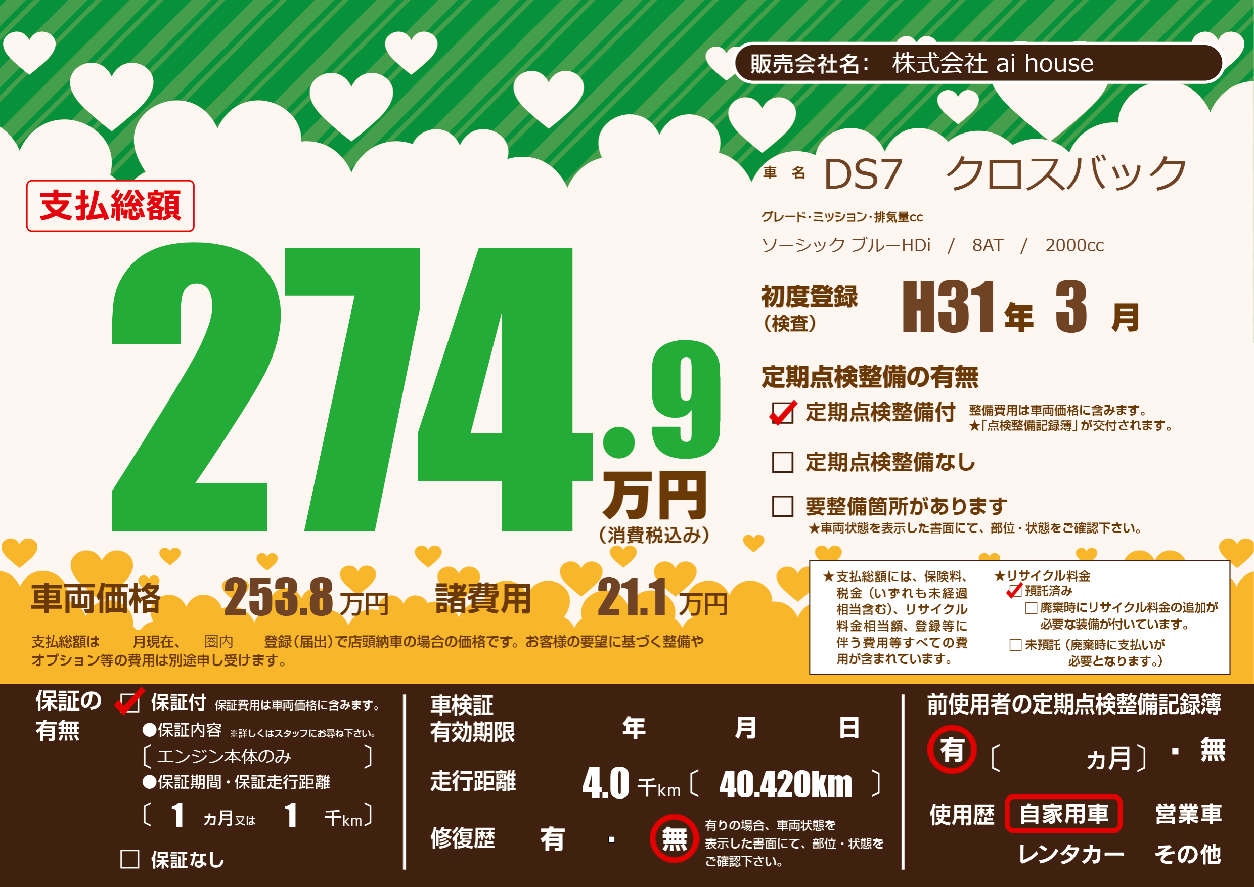 | 定期点検整備 | 定期点検整備あり | ||
