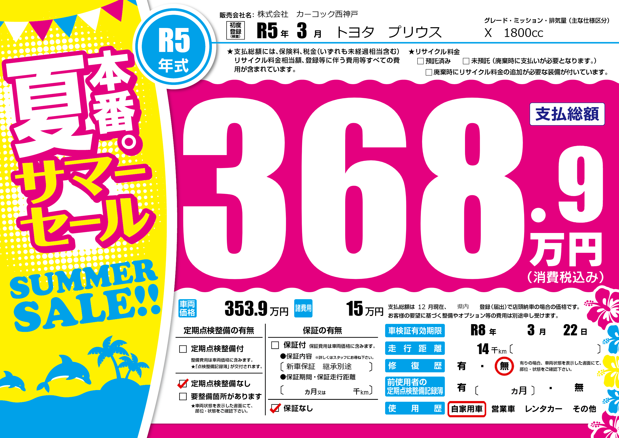 | 走行キロ | 1.4万km | 初年度登録 | R5年3月 |