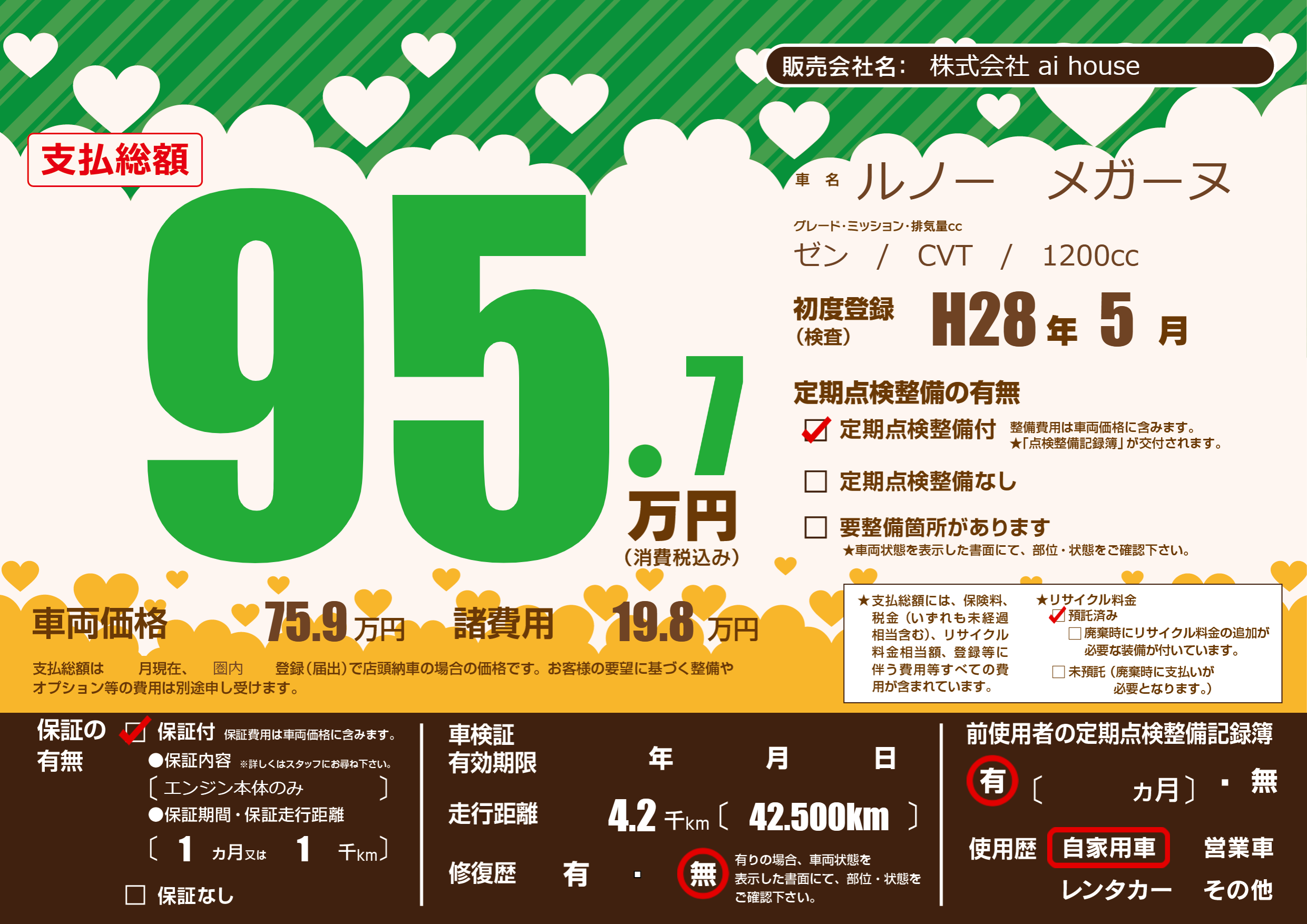 | 車名 | ルノー メガーヌ | グレード ミッション 排気量 |