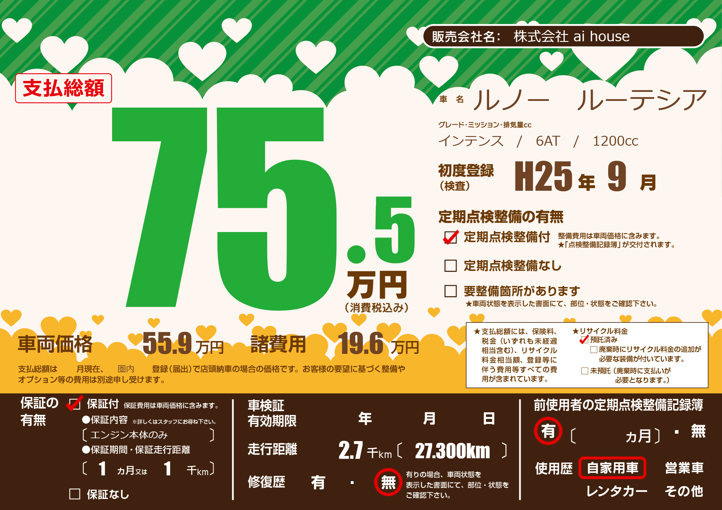 | 定期点検整備 | 定期点検整備あり | ||