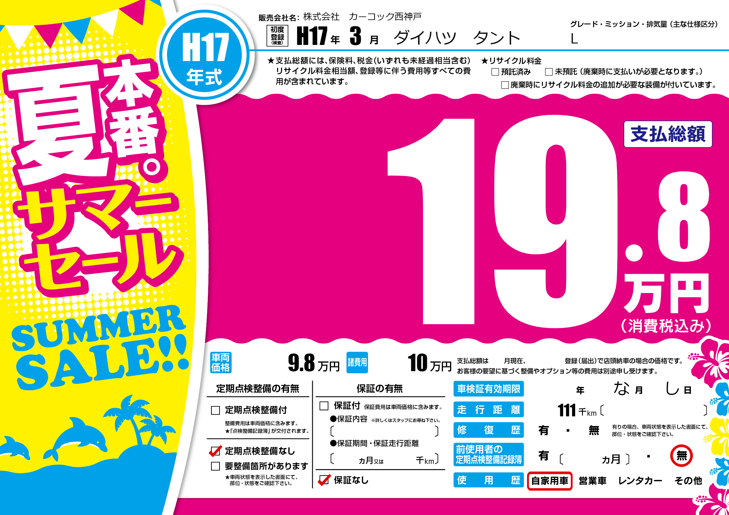 | 走行キロ | 11.1万km | 初年度登録 | H17年3月 |