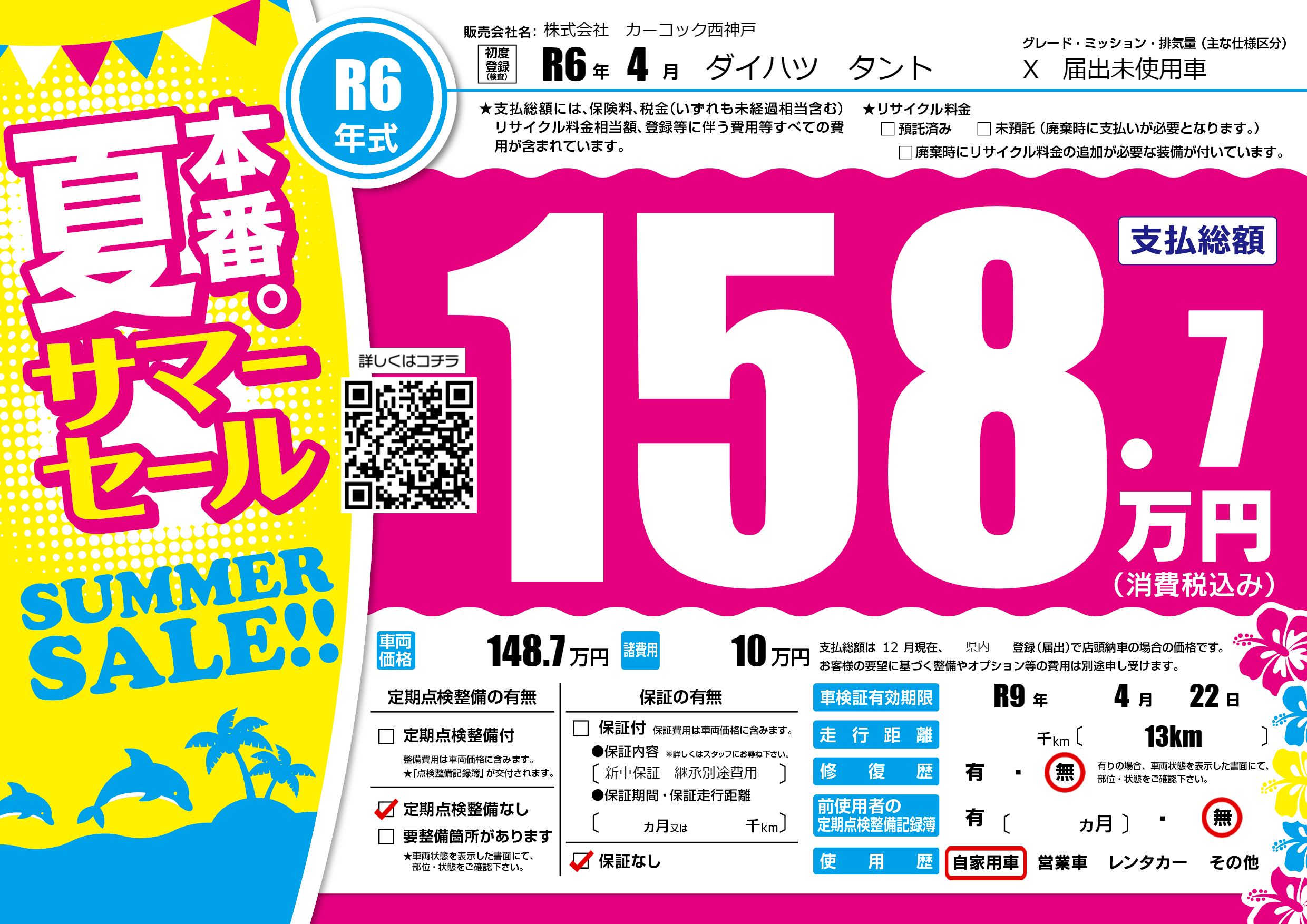 | 走行キロ | - | 初年度登録 | R6年4月 |
