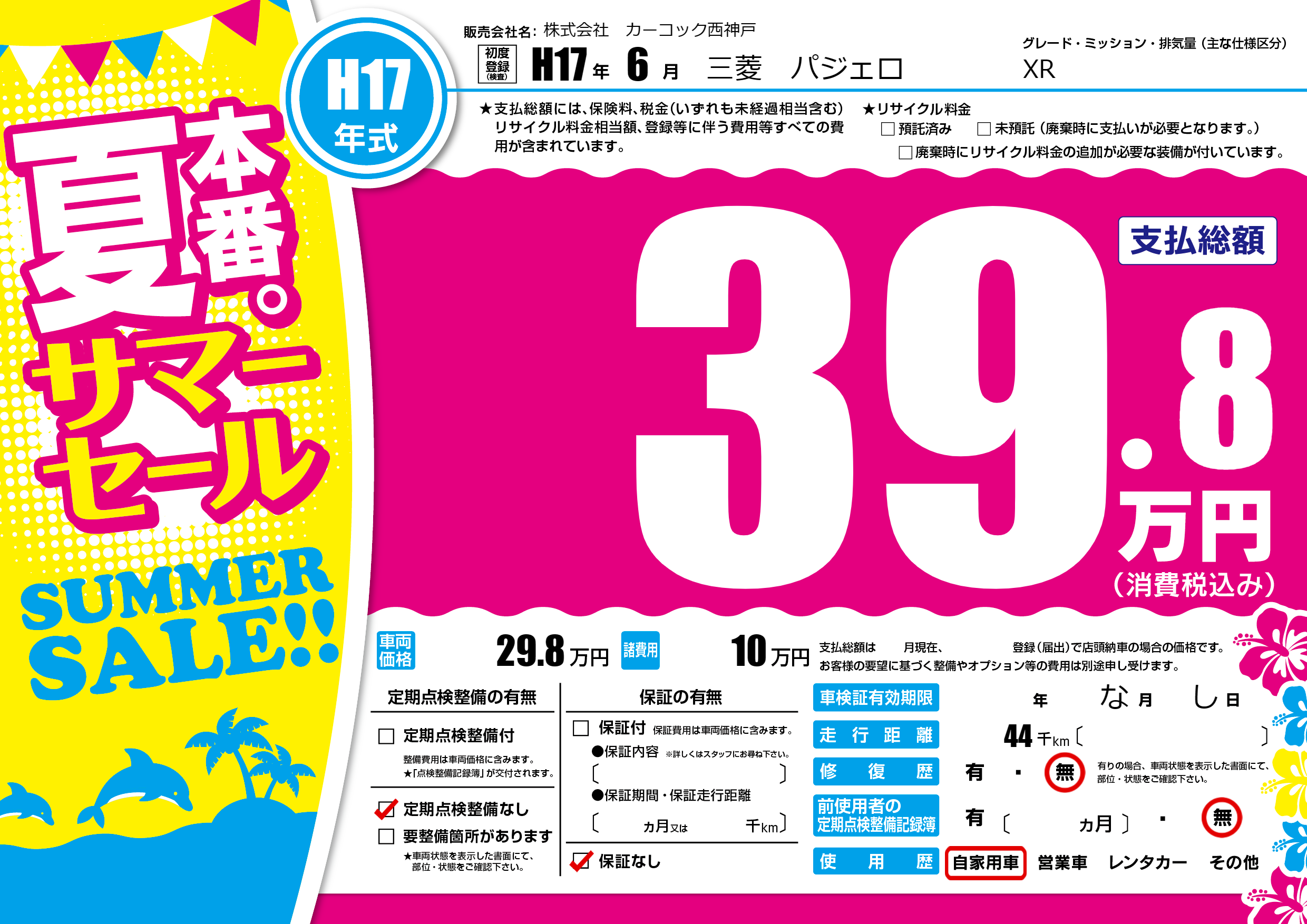 | 走行キロ | 4.4万km | 初年度登録 | H17年6月 |