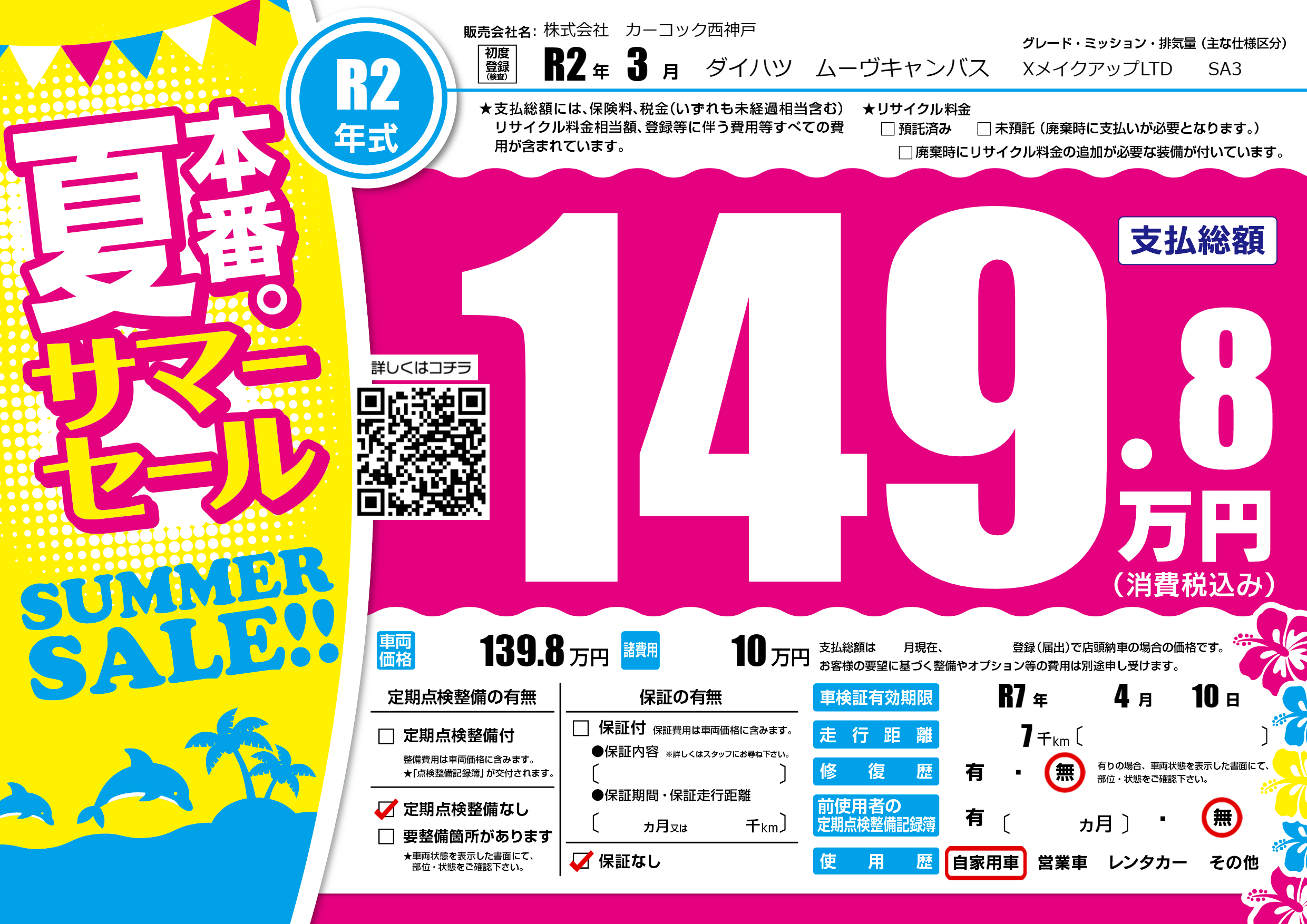 | 車検制限 | R7年 4月 10日 | ||