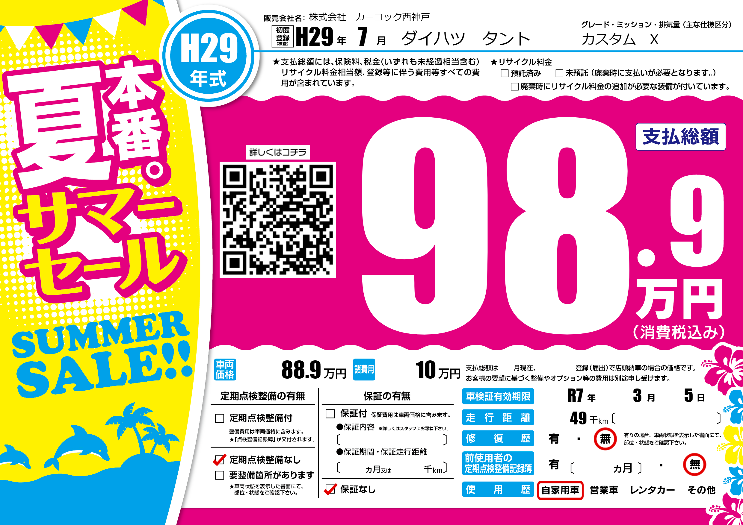 | 走行キロ | 4.9万km | 初年度登録 | H29年7月 |