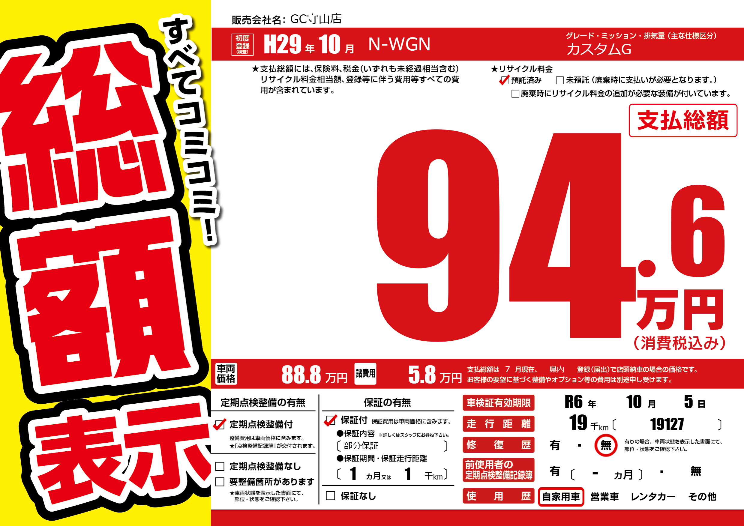 | 車名 | N-WGN | グレード ミッション 排気量 |