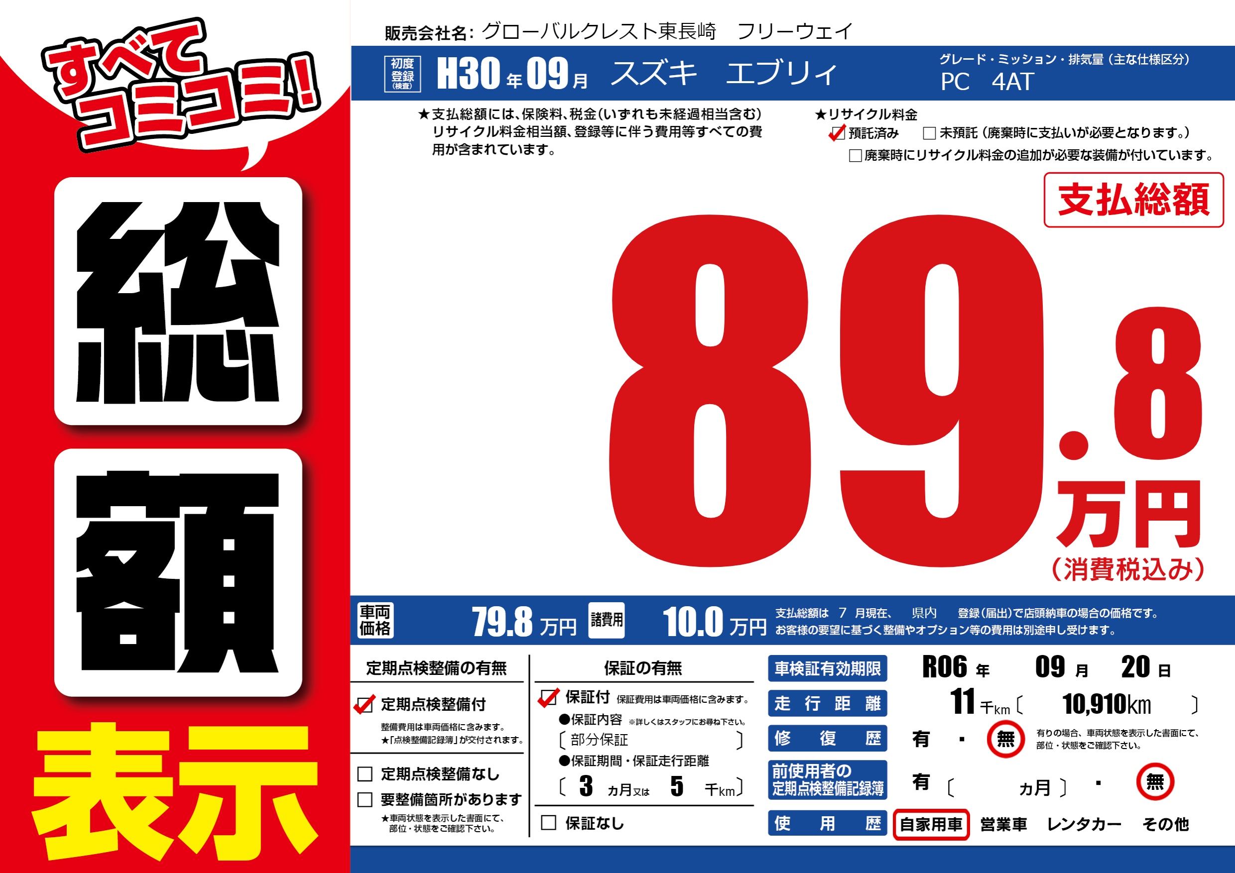 | 車名 | スズキ エブリィ | グレード ミッション 排気量 |