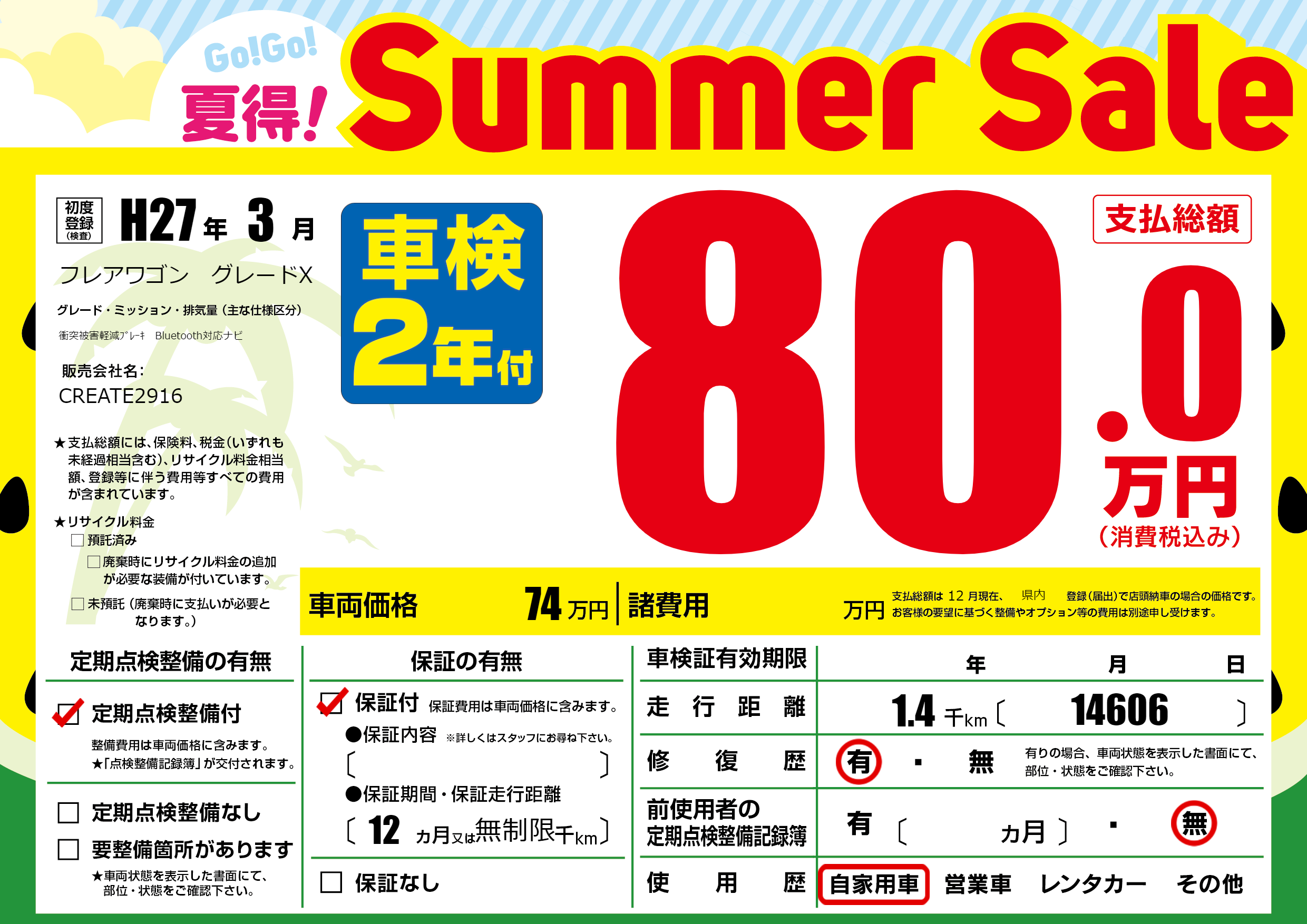 | 車名 | フレアワゴン グレードX | グレード ミッション 排気量 |