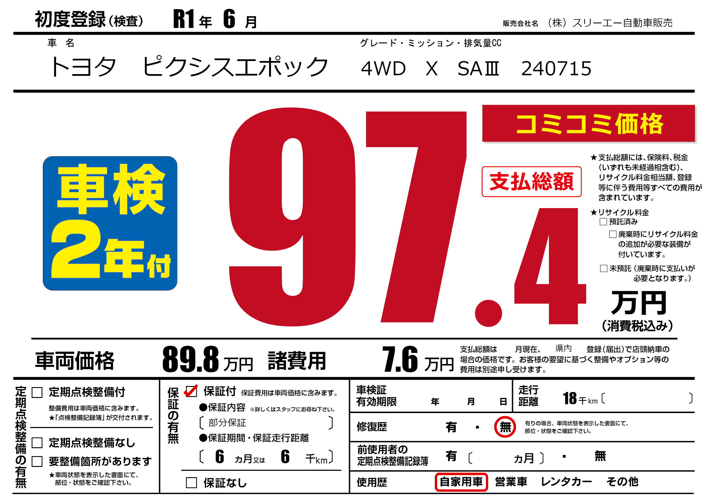 保証付き 保証内容(部分保証) 6ヶ月または(6)千kmまで |