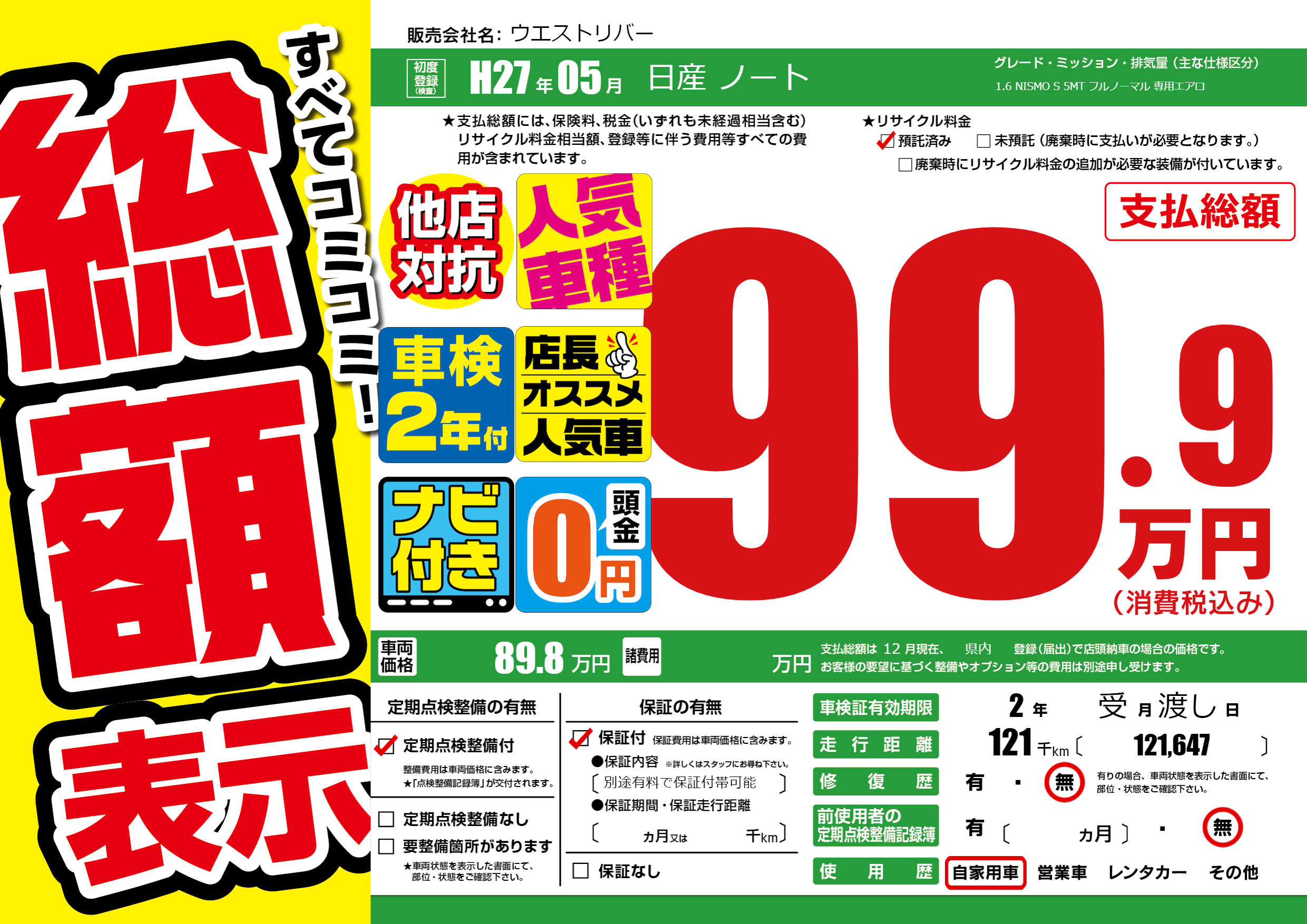 | 車名 | 日産 ノート | グレード ミッション 排気量 |
