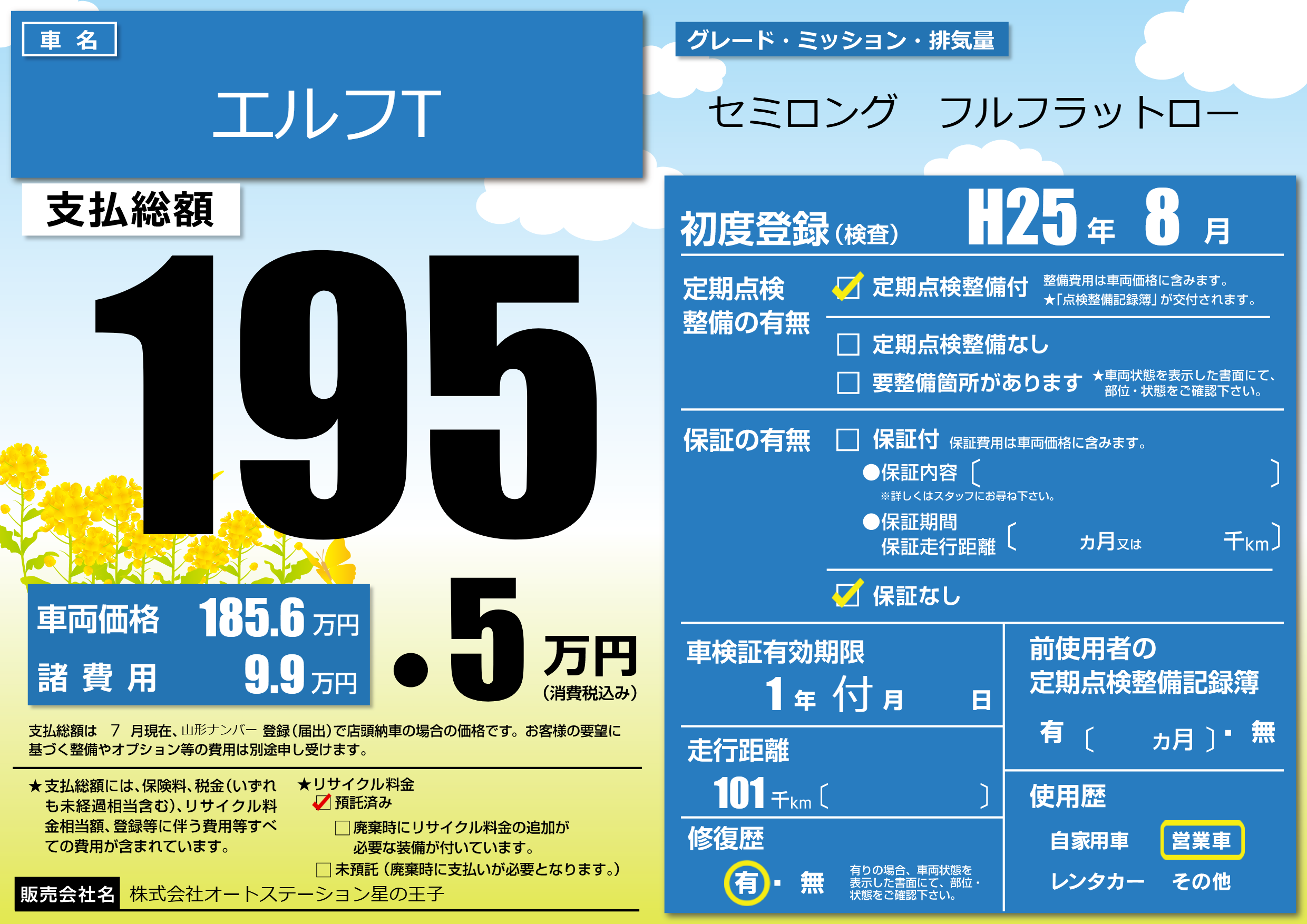 | 車名 | エルフT | グレード ミッション 排気量 |