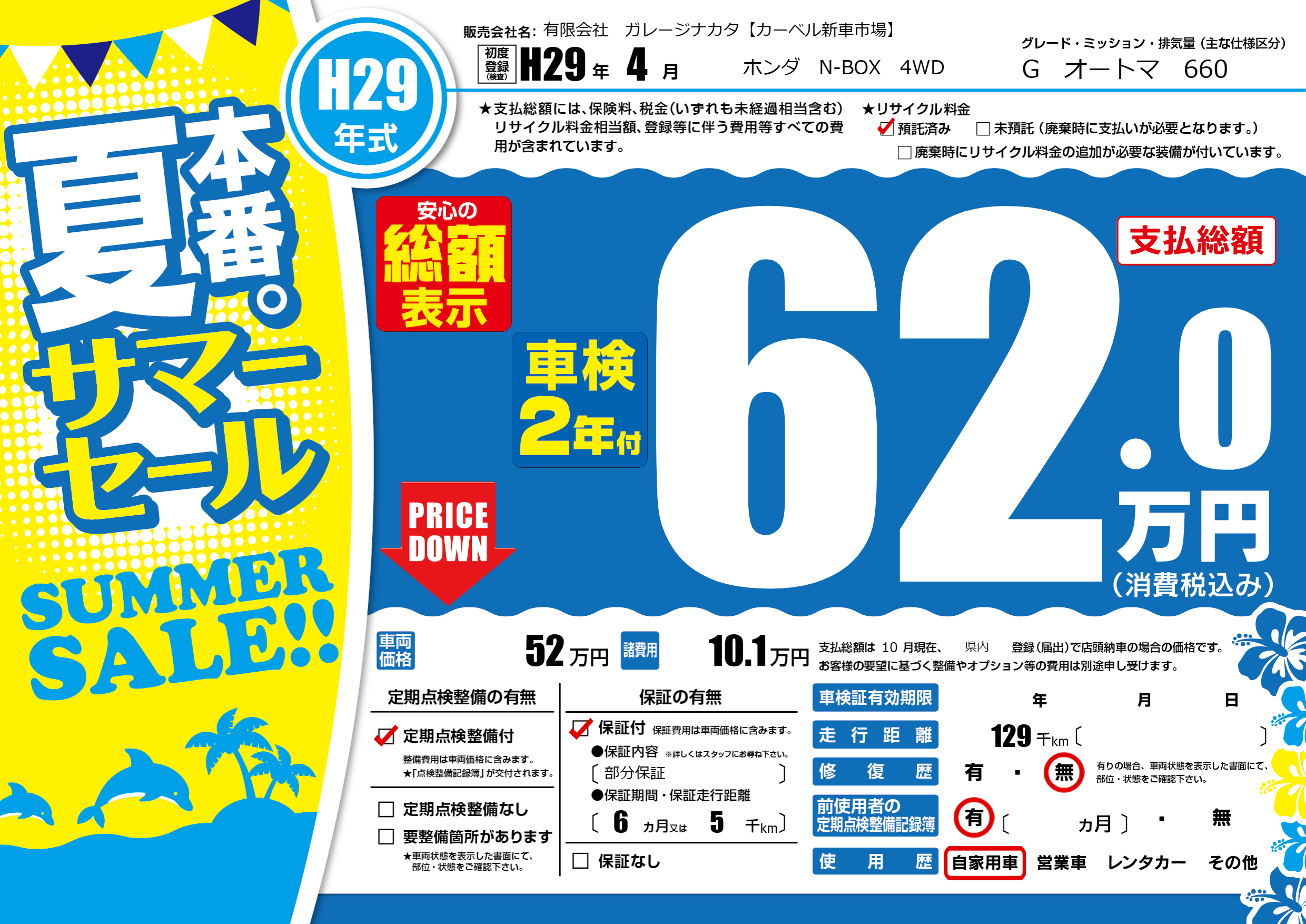 保証付き 保証内容(部分保証) 6ヶ月または(5)千kmまで |