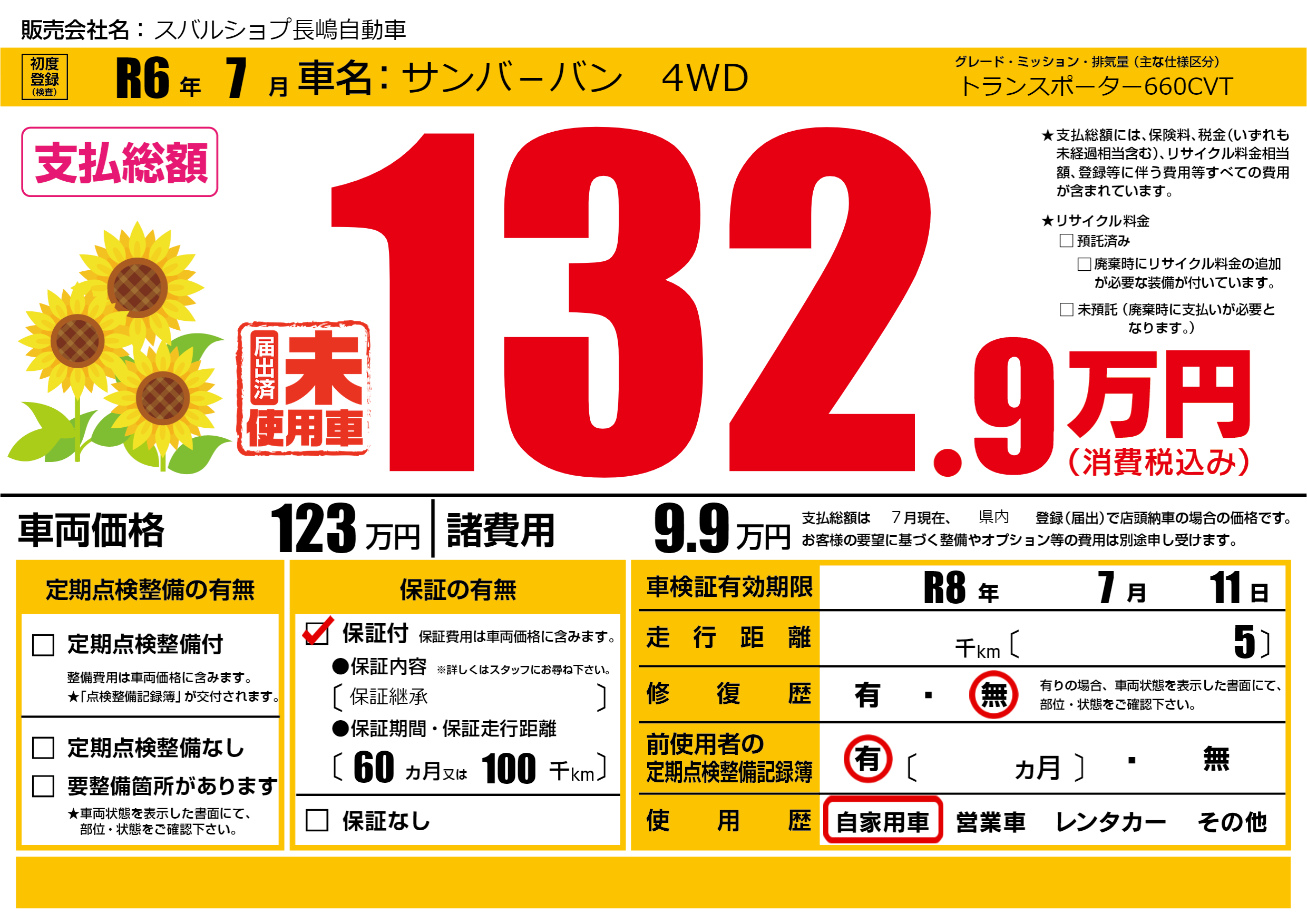 | 走行キロ | - | 初年度登録 | R6年7月 |