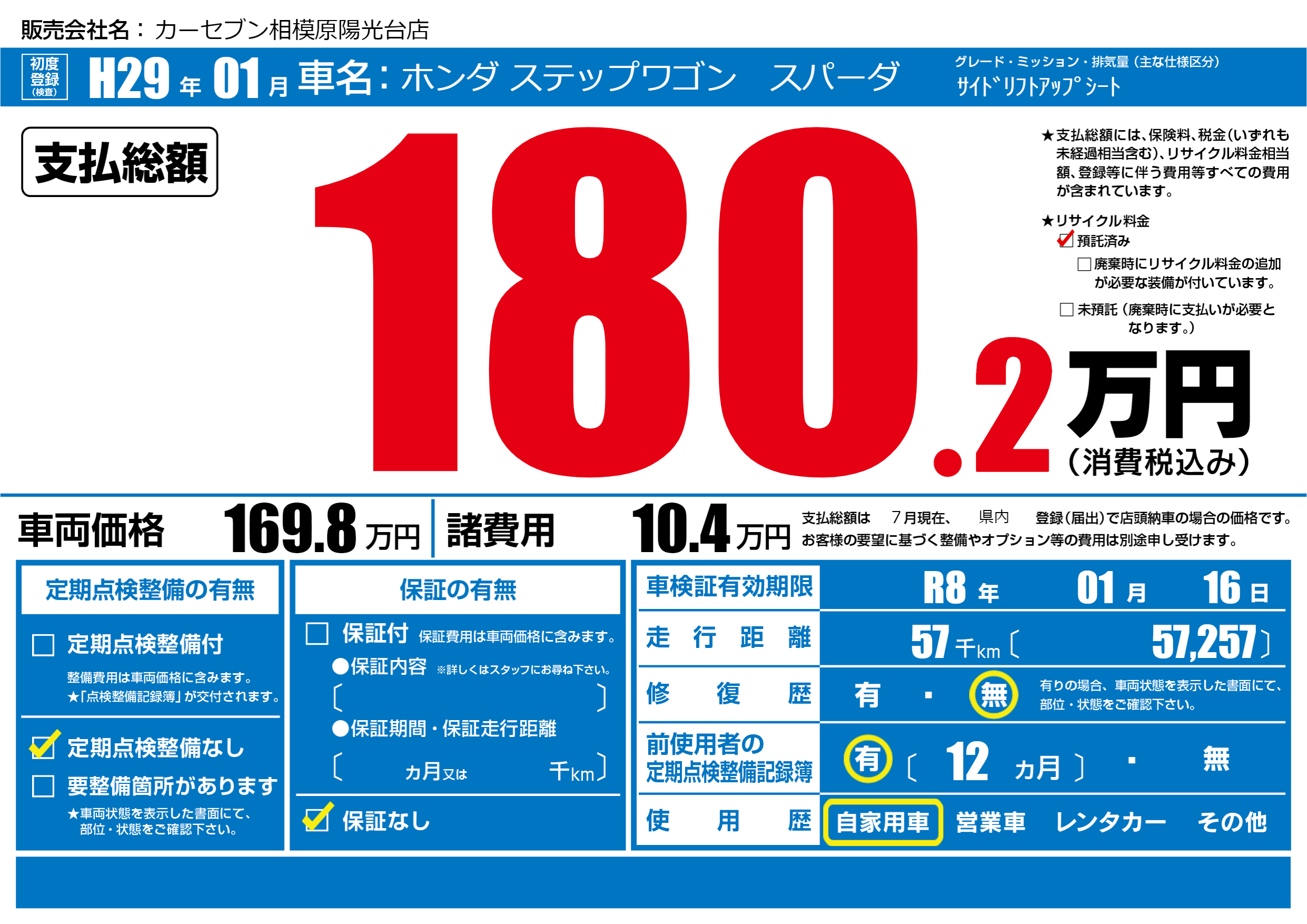 なし | 車検制限 | R8年01月16月 |